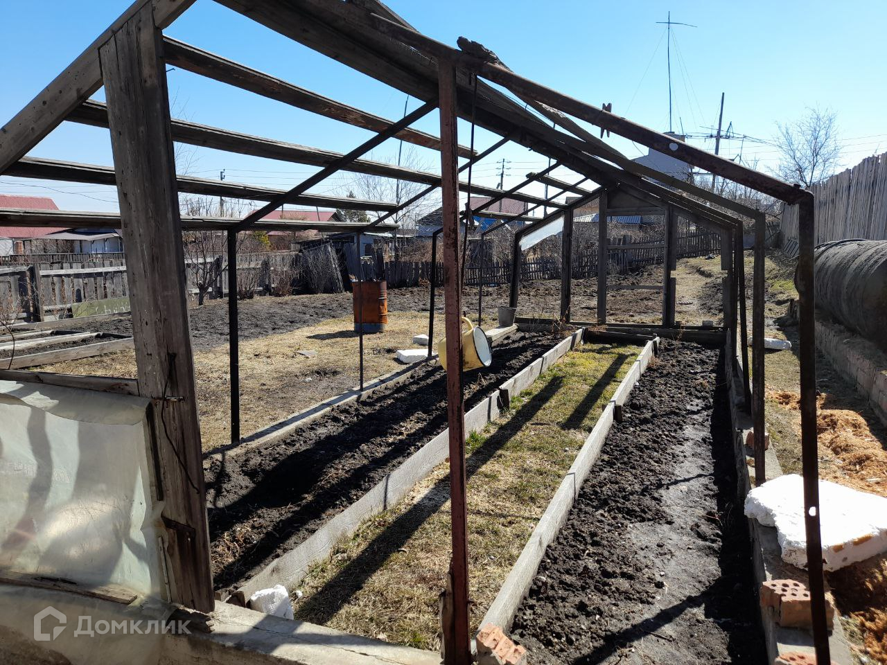 Участок 6,3 сотки. Разработан, огорожен со всех сторон. Хорошая мягкая земля. Насаждения. Каркас теплицы железный. Летний водопровод. И есть возможность подключения центральной воды.