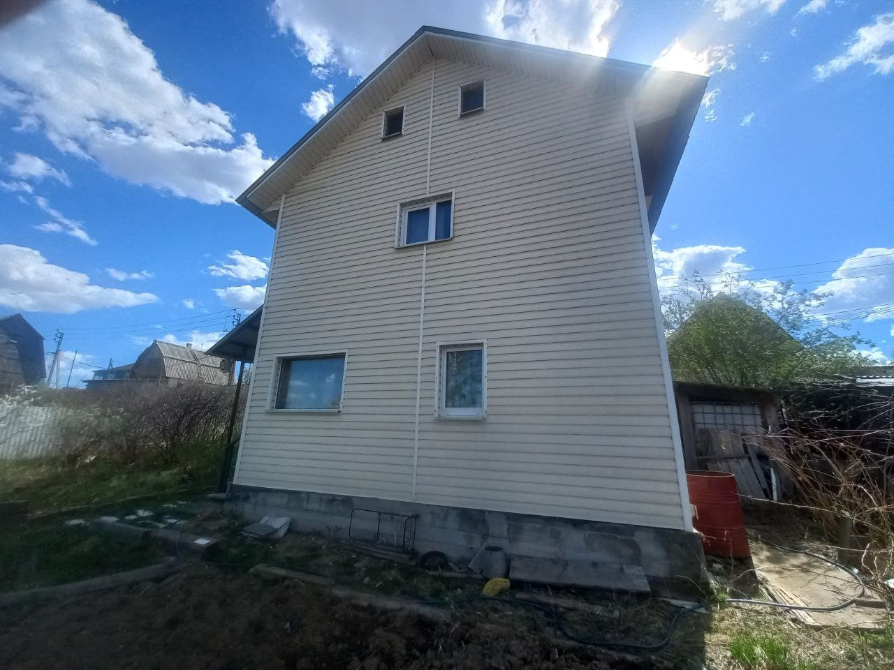 Ухоженный огород, много садовых плодовых дорогих деревьев, альпийская горка, площадка для авто, летний водопровод, водонакопитель. Заведен в дом летний водопровод, есть сауна. Второй этаж студией.