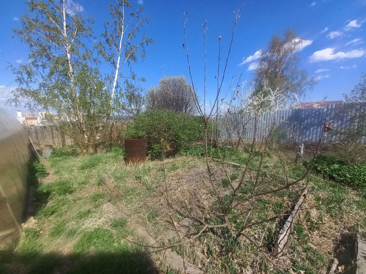 Насаждения: абрикос, яблони, жимолость разных видов, смородина (красная, черная), крыжовник, черноплодная рябина, игра, облепиха, виктория, слива желтая, яблоня-ранетка, вишня войлочная и владимирская, малина,