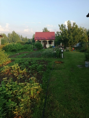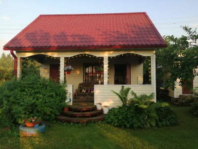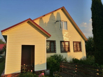 На участке 12 соток ( 2 участка по 6 соток) расположены - основной дом 45,4м , выполненный по каркасной технологии и обшит сайдингом,  и домик 19.9м с летней кухней и верандой. Туалет уличный, душ с подогревом, хоз блок. Также есть а/м парковка на 2 авто с навесом. Имеется 2 заезда ( с двух сторон), с одной стороны откатные ворота, с другой распашные.