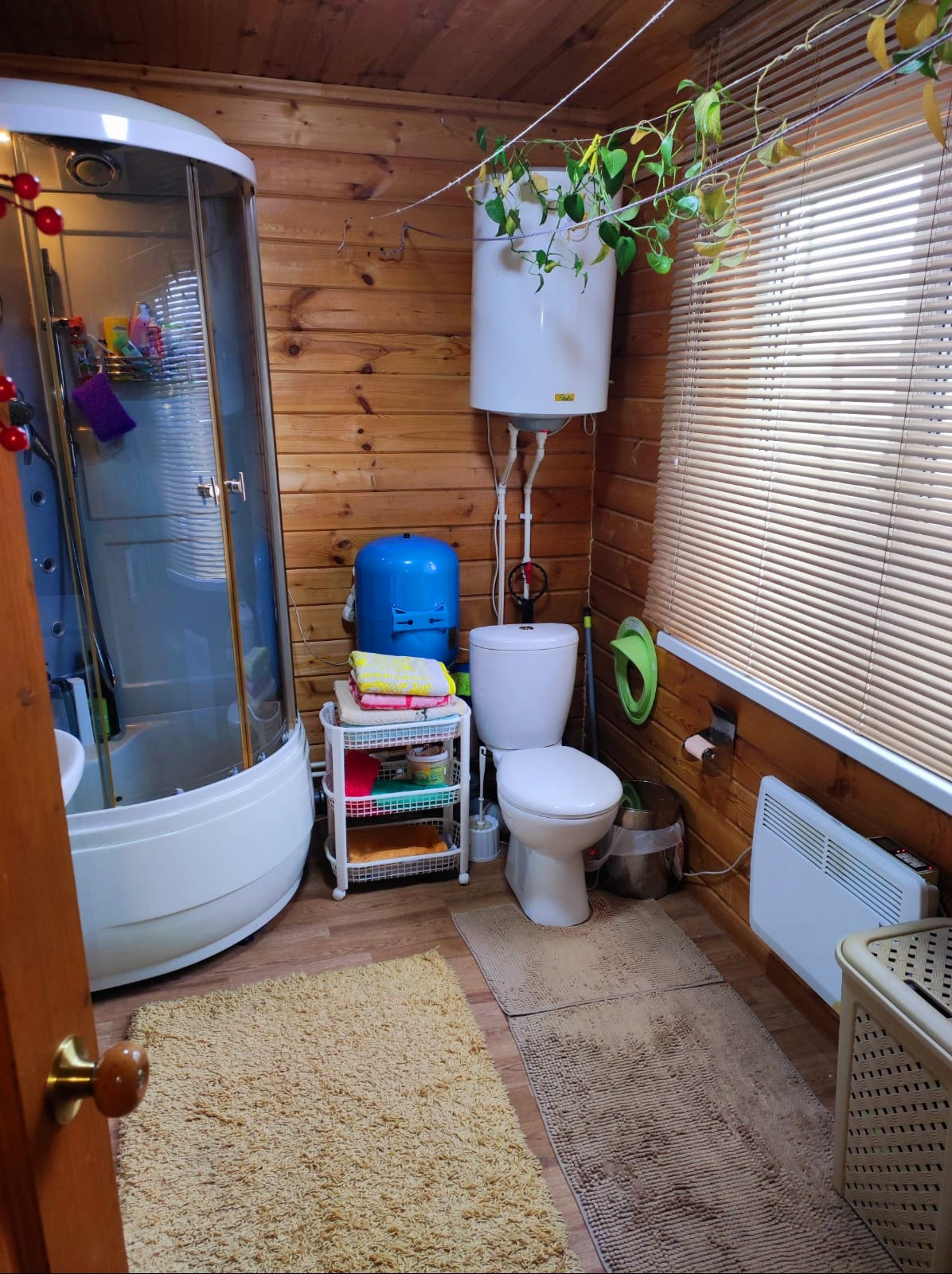 Коммуникации заведены в дом:вода колодец(5-6колец,также на участке есть второй колодец для сада и улицы),электричество 7,5КВат,установлен стабилизатор напряжения,который бережет технику от последствий скачков напряжения, канализация-септик Юнилос на 5 взрослых,также установлено цифровое ТВ на 2 этажа и оно оплачено.Отопление конвекторное,в трёх комнатах теплый пол,также закуплены новые биметаллические радиаторы на весь дом,остается только купить котел и трубы , горячая вода от бойлера.