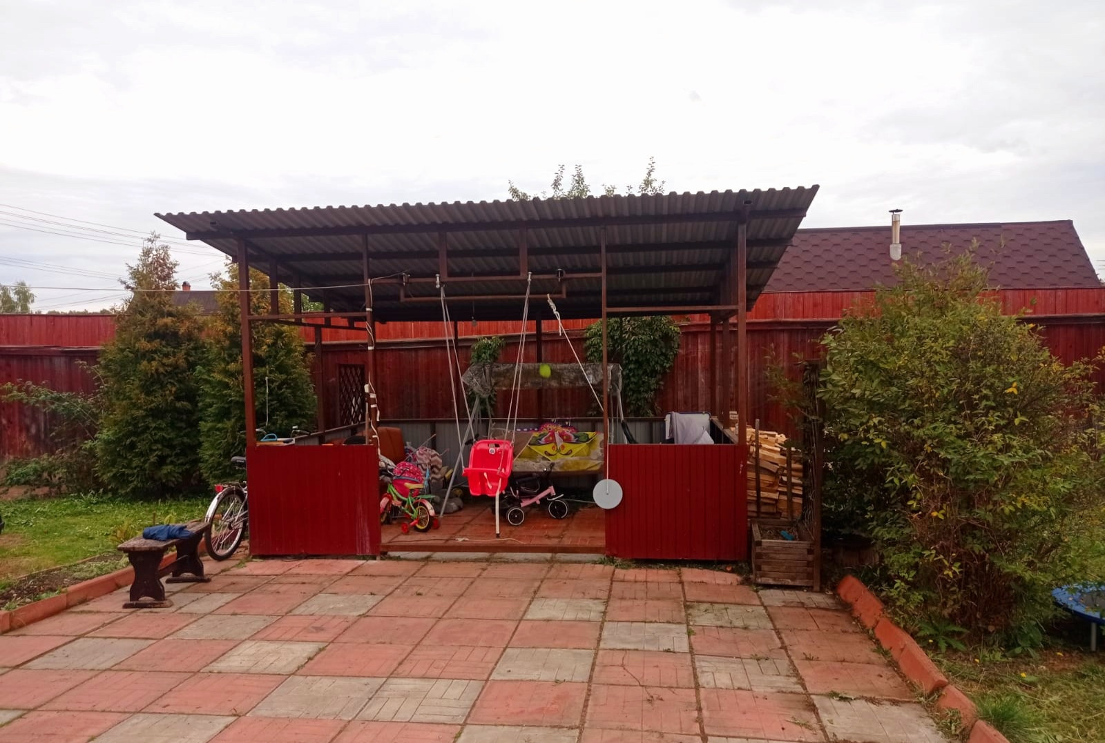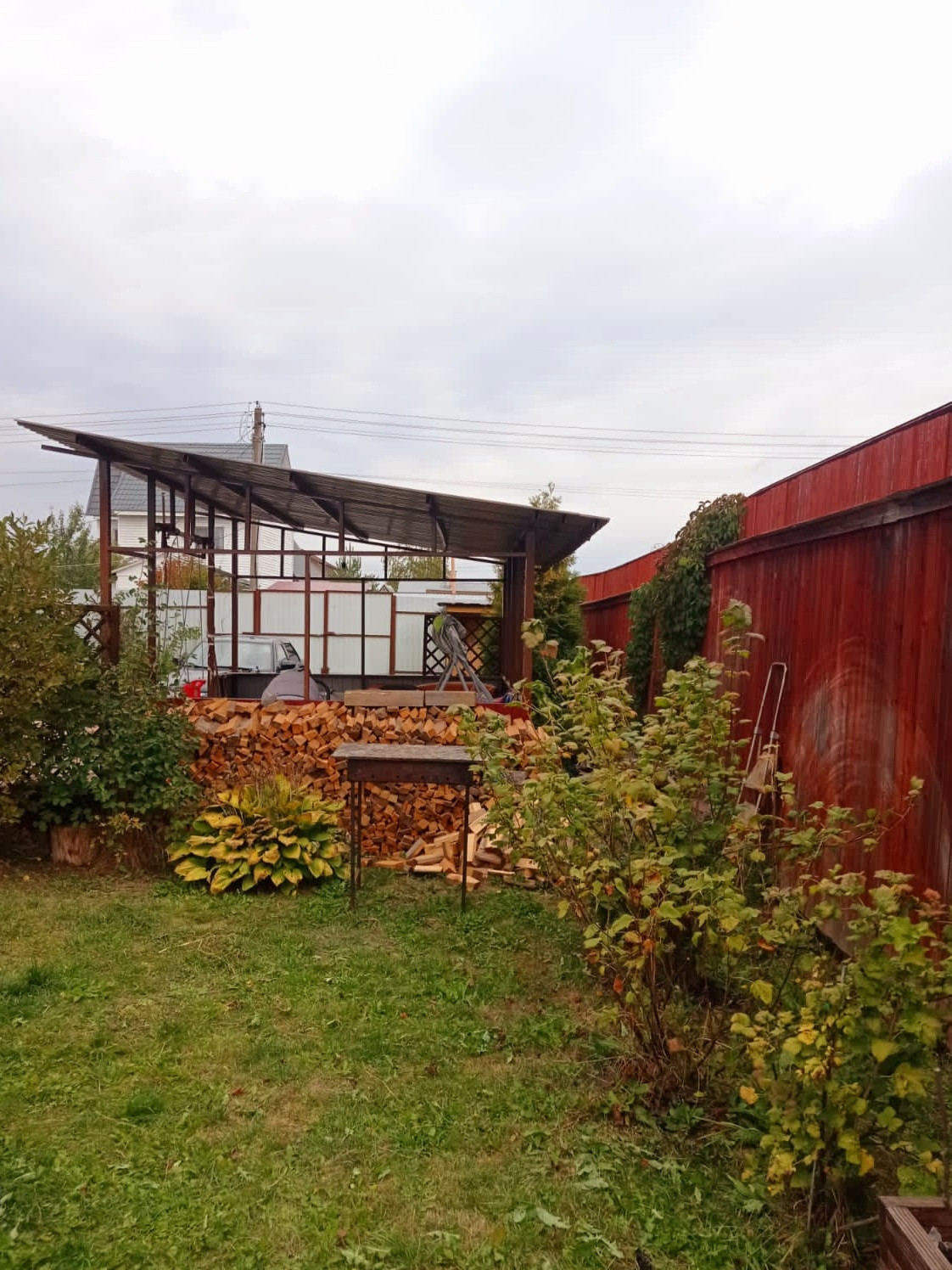 На территории участка имеются постройки: теплица 3*6,бытовка 2*4 для хранения инвентаря и сад.техники,просторная беседка 3*4,везде проведено электричество.