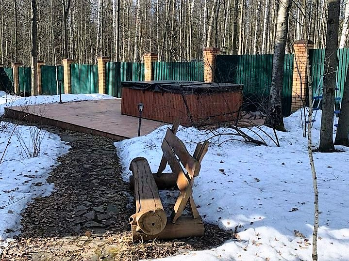 Цоколь: погреб.Первый этаж: гостиная с камином, кухня-столовая, гостевой с/у, гардеробная, выход на летнее патио с шезлонгами и барбекю-зоной.Второй этаж: три спальни, два с/у.Мансарда: библиотека.Участок: 15 соток в собственности и 15 соток аренда леса