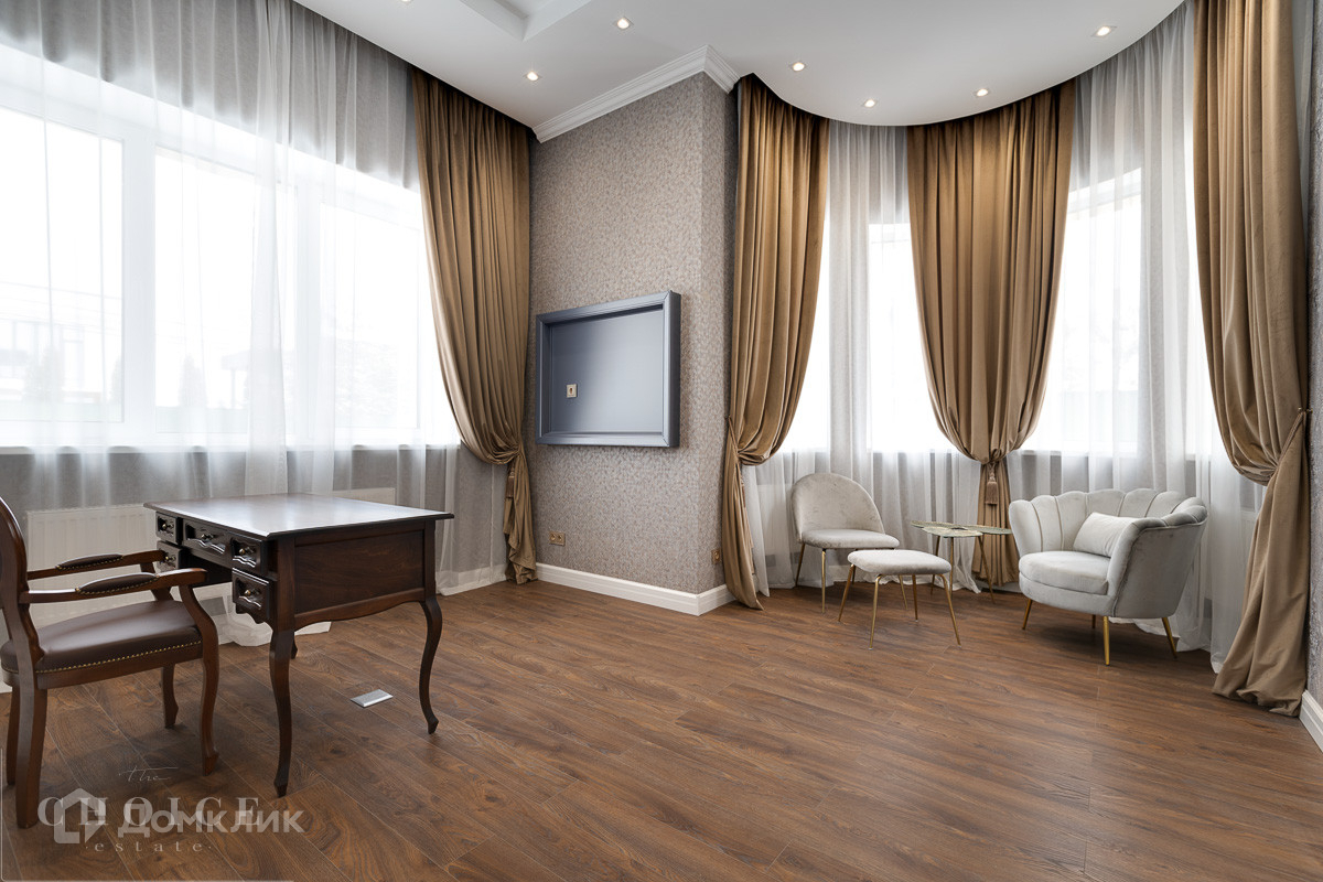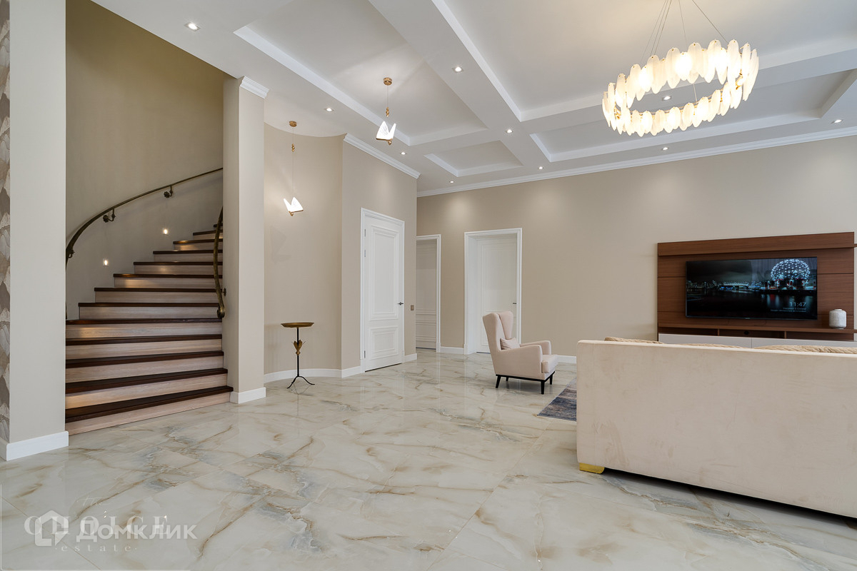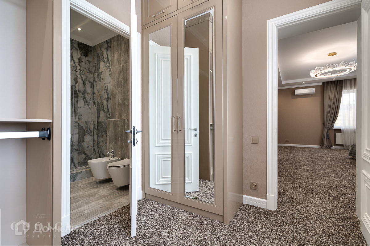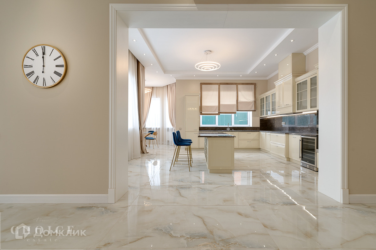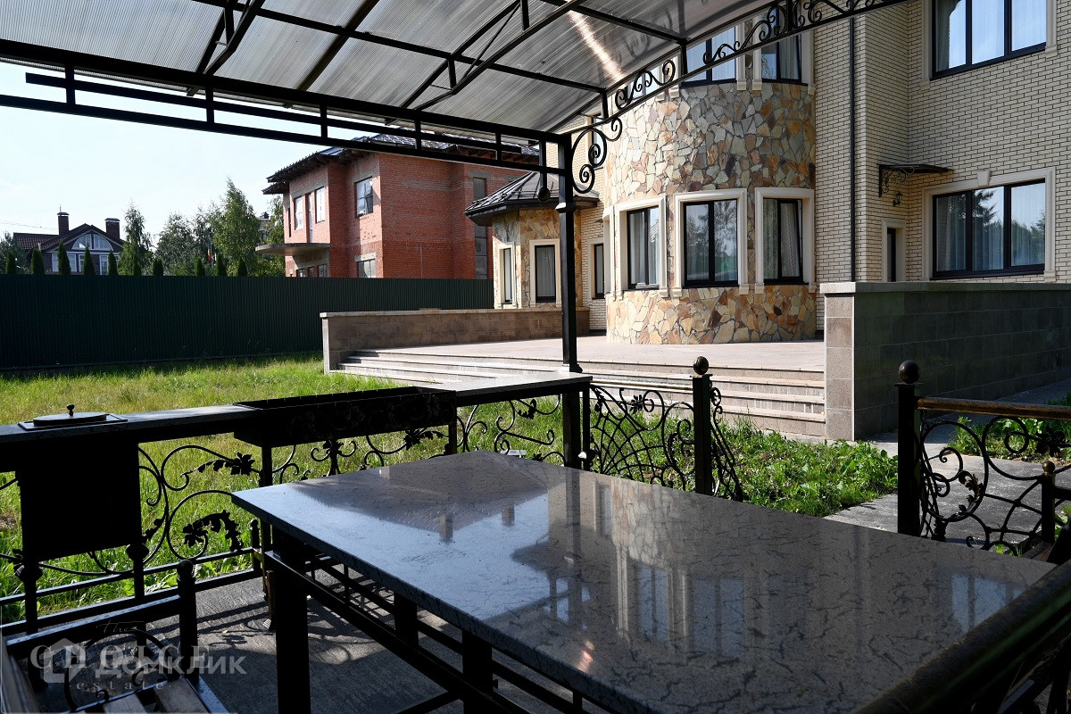 На продажу предлагается загородный дом площадью 540 кв.м . Фасад облицован бежевым клинкерным кирпичом и камнем, входная группа, цоколь и терраса выполнены из гранита. Интерьер оформлен в светлых кремовых оттенках. На территории поселка отдельно стоящий гараж на 2 м/м с квартирой для персонала.