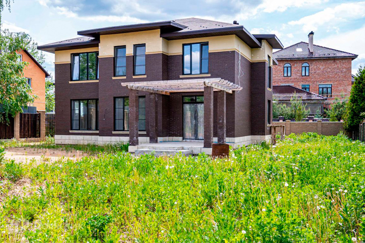 Новый загородный дом площадью 300 м2 построен на полевом участке площадью 10 соток в охраняемом КП "Горки-2 снт". Дом находится в стадии предчистовых ремонтных работ. Есть возможность довести дом "под ключ" по существующему дизайн-проекту. Планировкой дома предусмотрено 4 спальни, просторная зона гостиной-кухни-столовой с выходом на крытую террасу.
