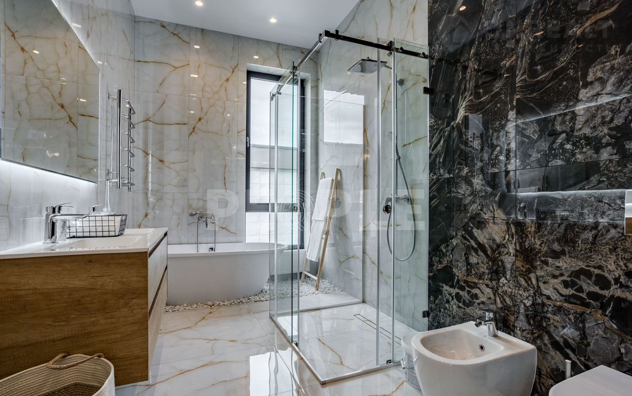 2-й этаж: мастер-спальня с ванной и гардеробной, две детские спальни с ванными и гардеробными, балкон.