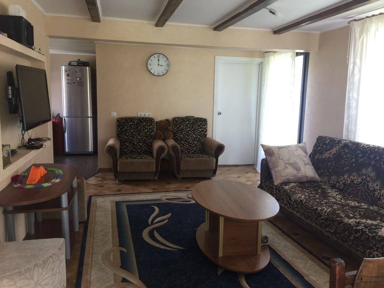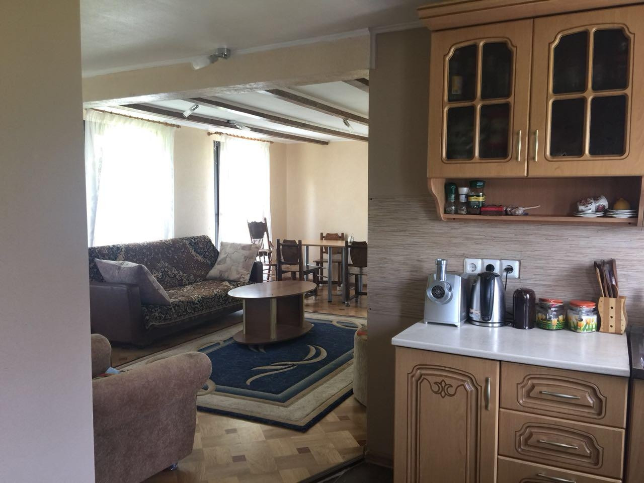 К Вашим услугам уютный дом, где предусмотрено всё для комфортного проживания. На первом этаже спальня, кухня, гостиная и сан.узел. На втором этаже две спальни и гардеробная.