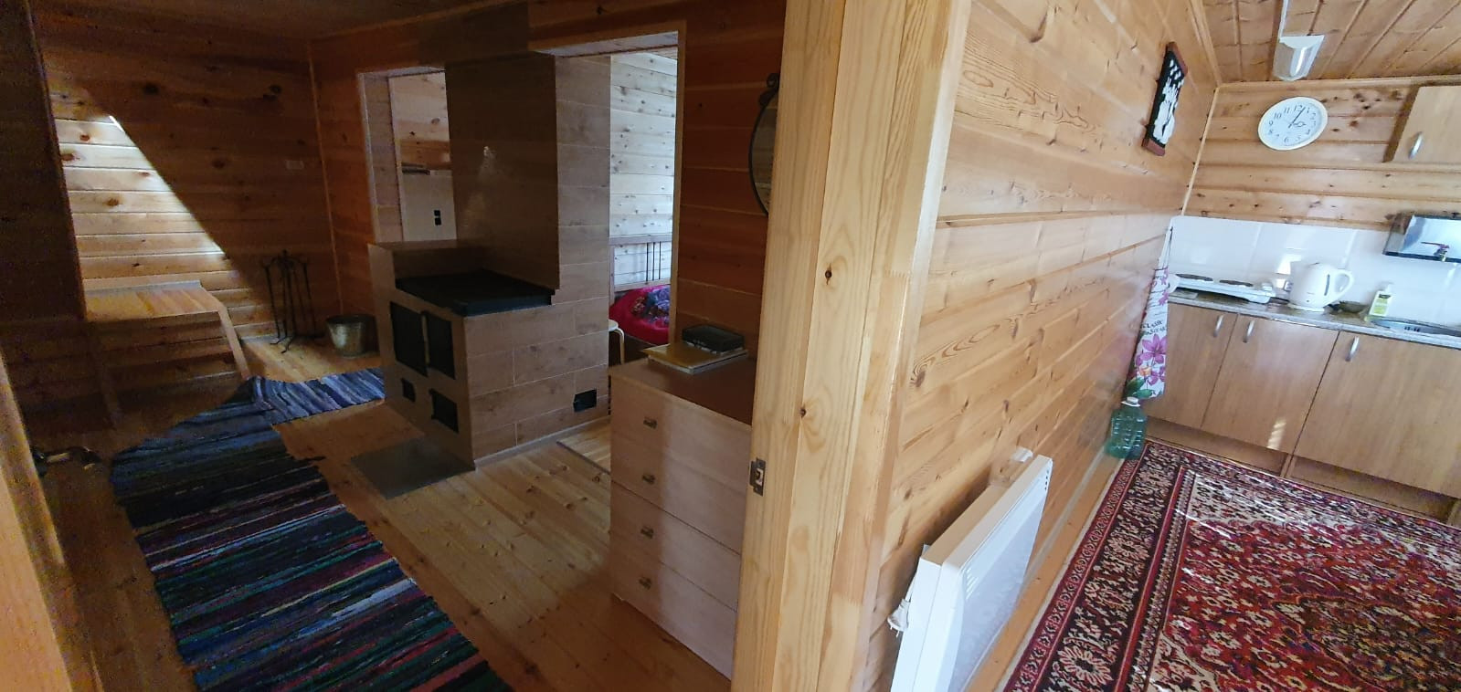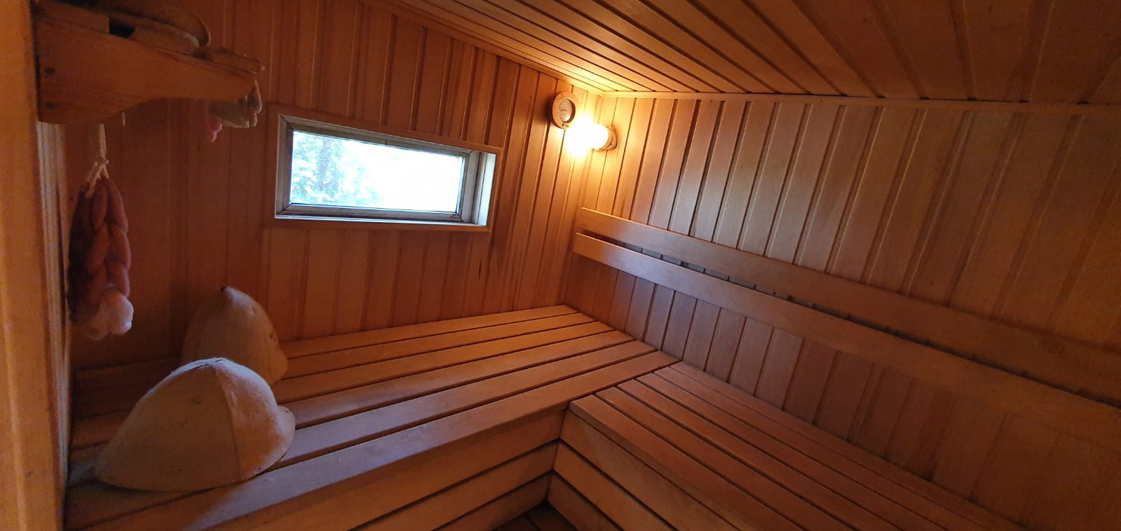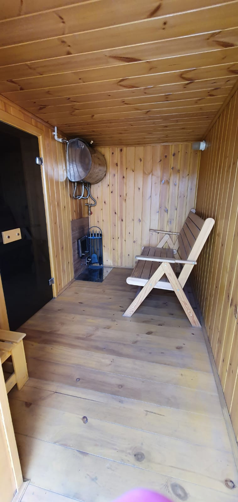 стены, пол и потолок утеплены и обшиты сосной и лиственницей;