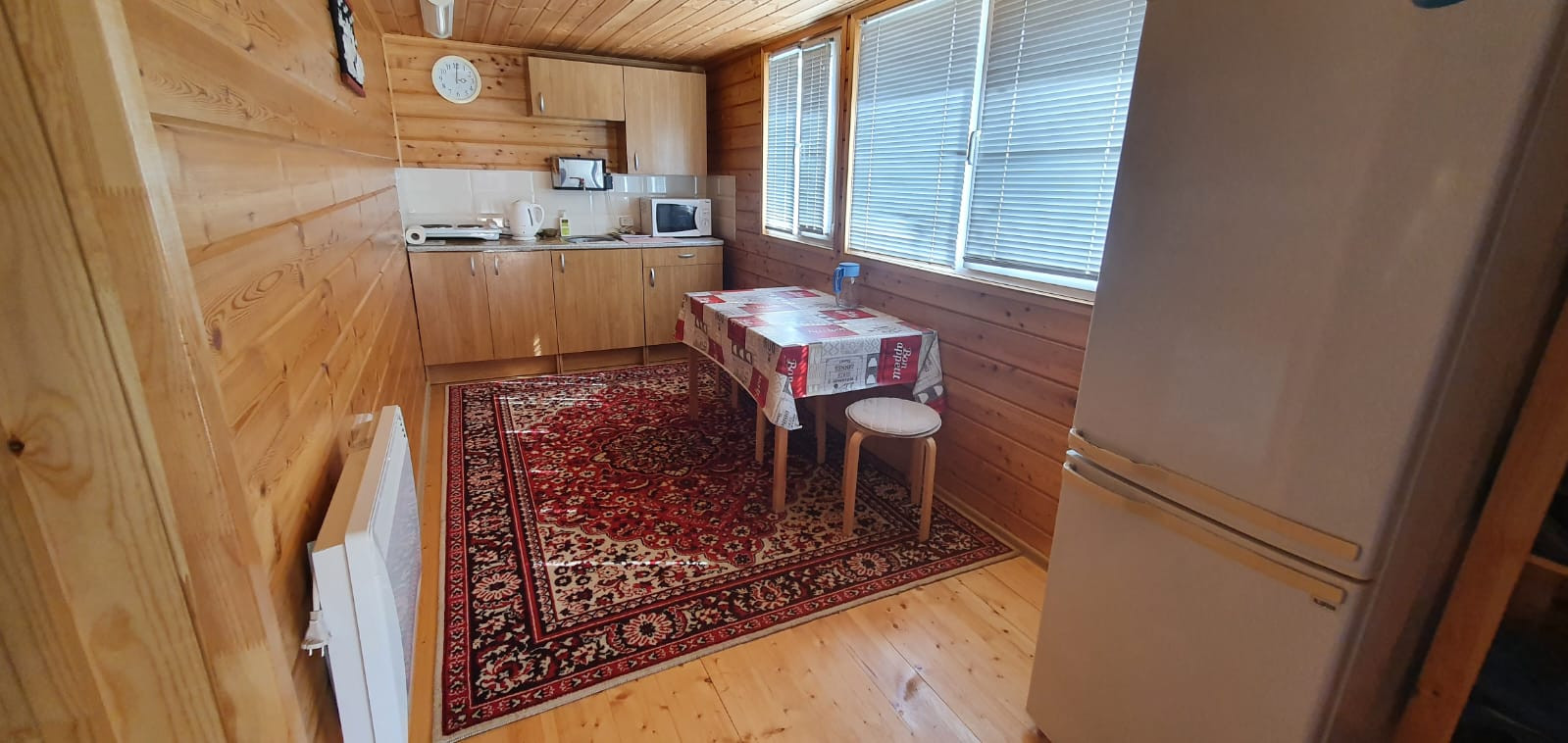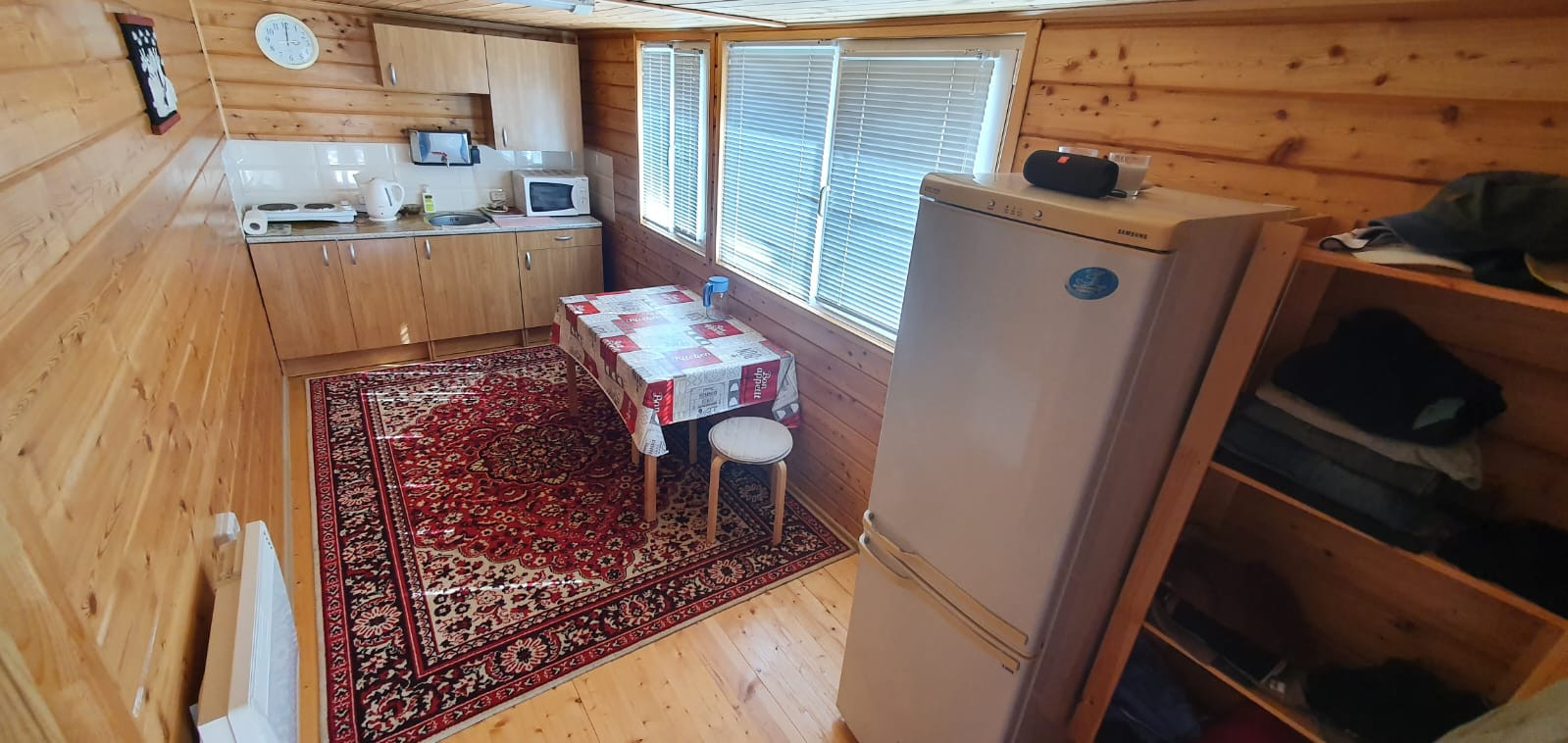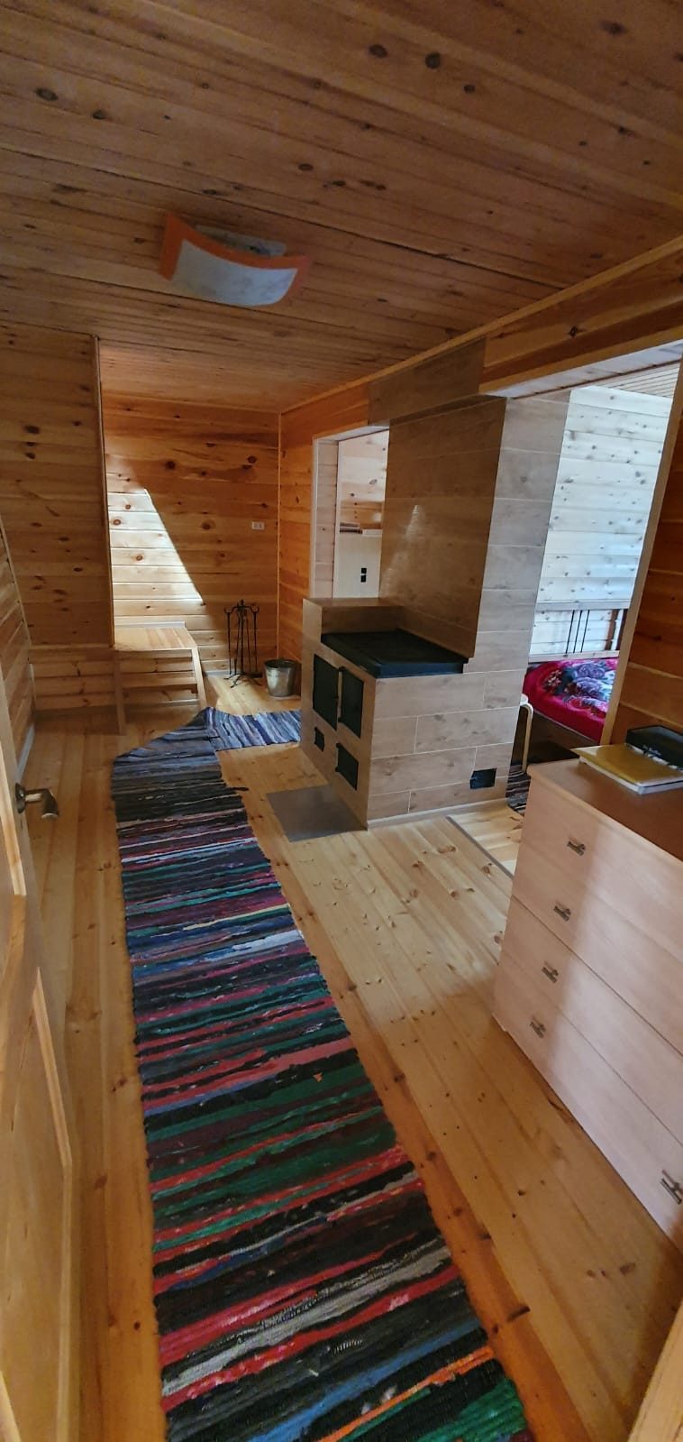 стены, пол и потолок утеплены и обшиты сосной и лиственницей;