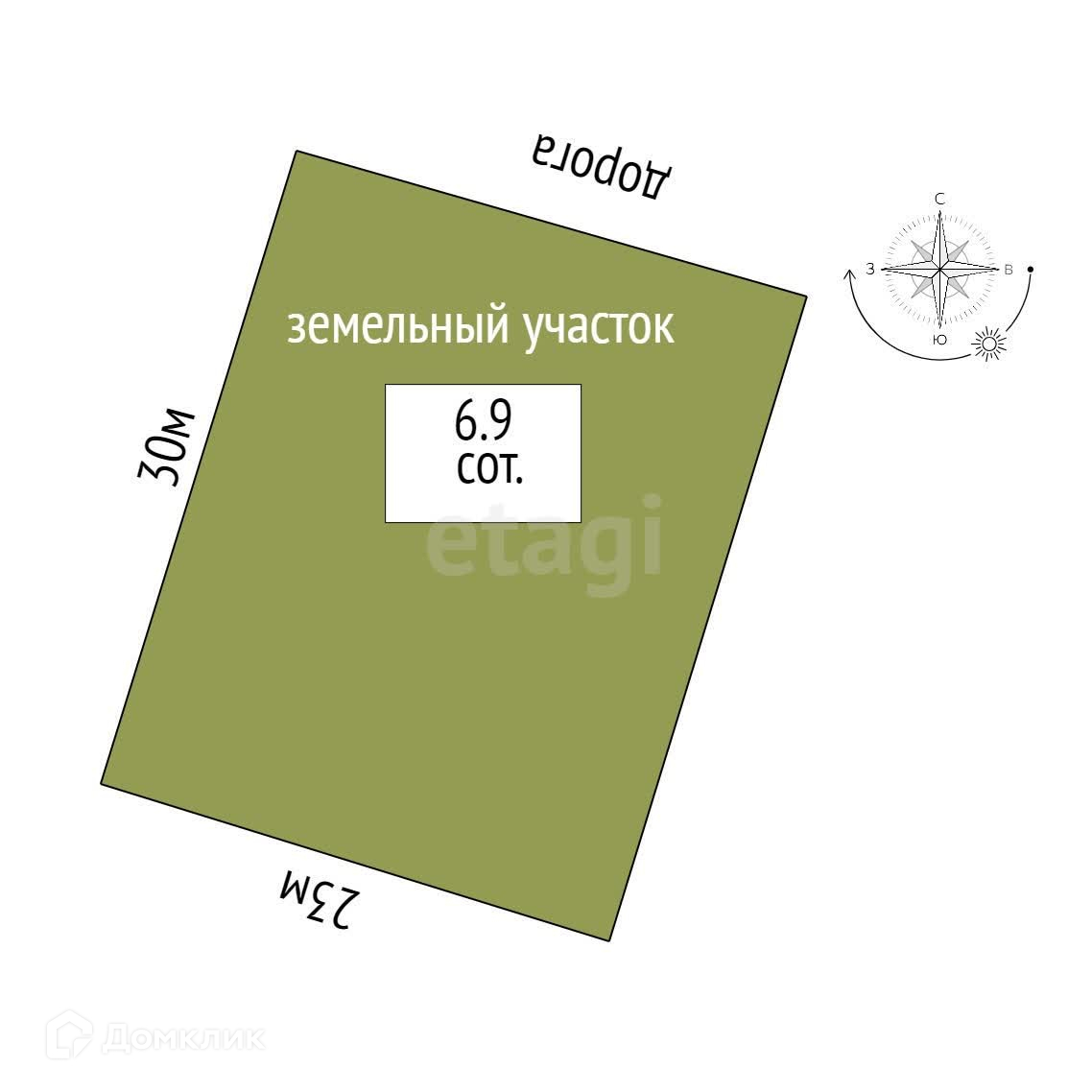 Площадь участка 6.9 сот.