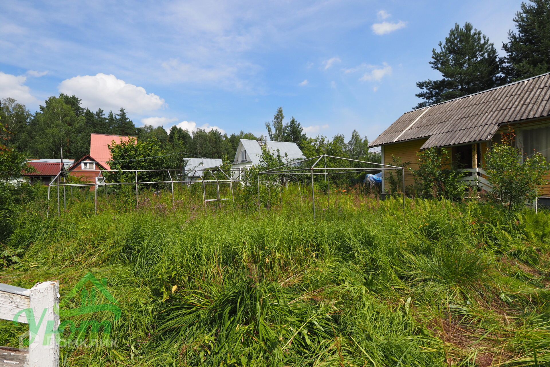 Участок огорожен, есть возможность присоединения еще земли за пределами границ. На участке есть калитка с выходом в лес.