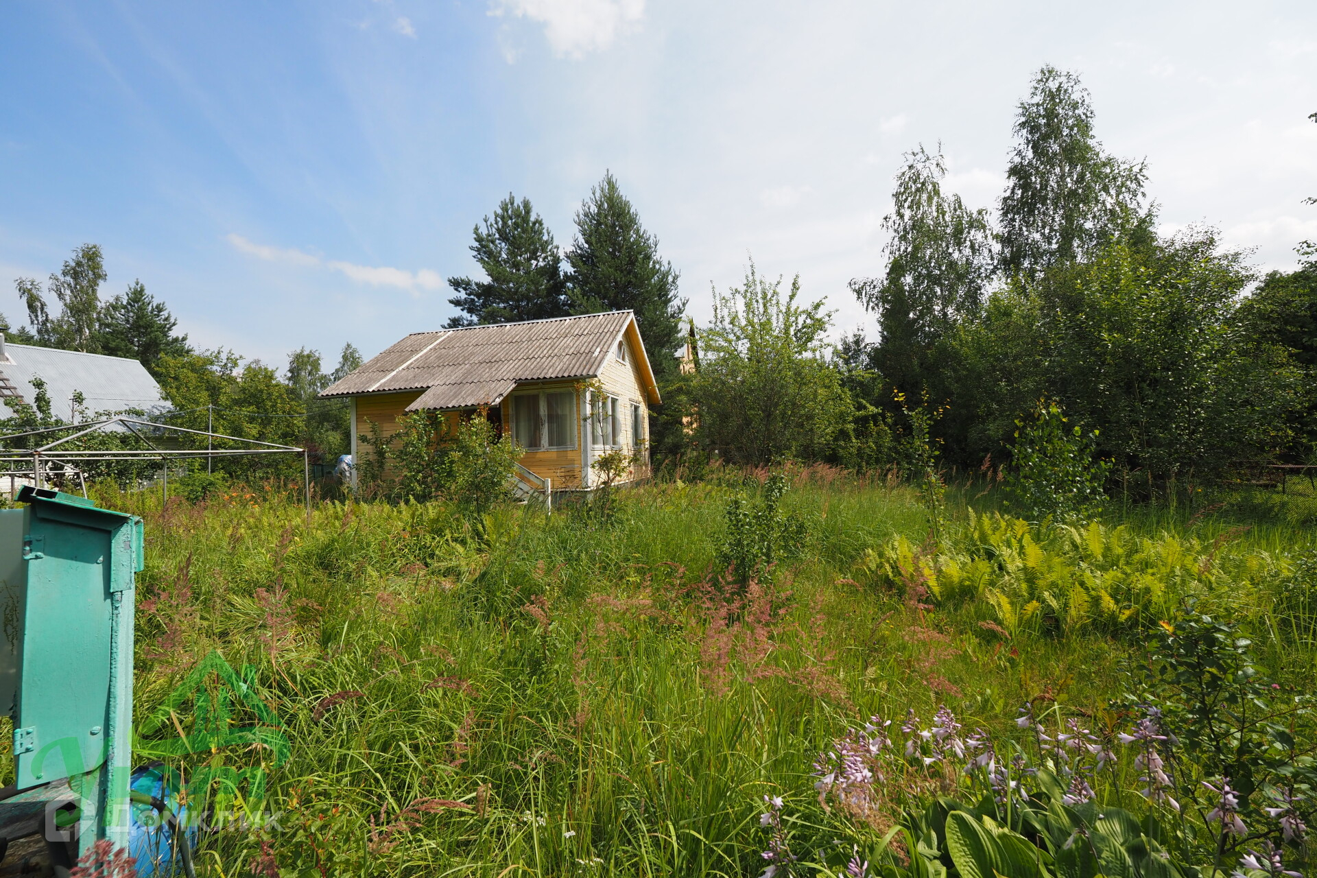 На участке посажены яблони, вишня, кустарники, цветы. На его территории находятся дом, летняя кухня, душ, сан. узел. Есть летний водопровод, электричество.