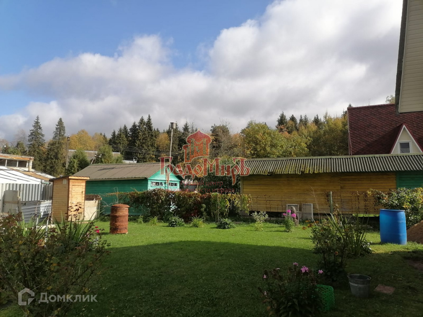 Рядом с домом большой гараж. Разделен на две части.