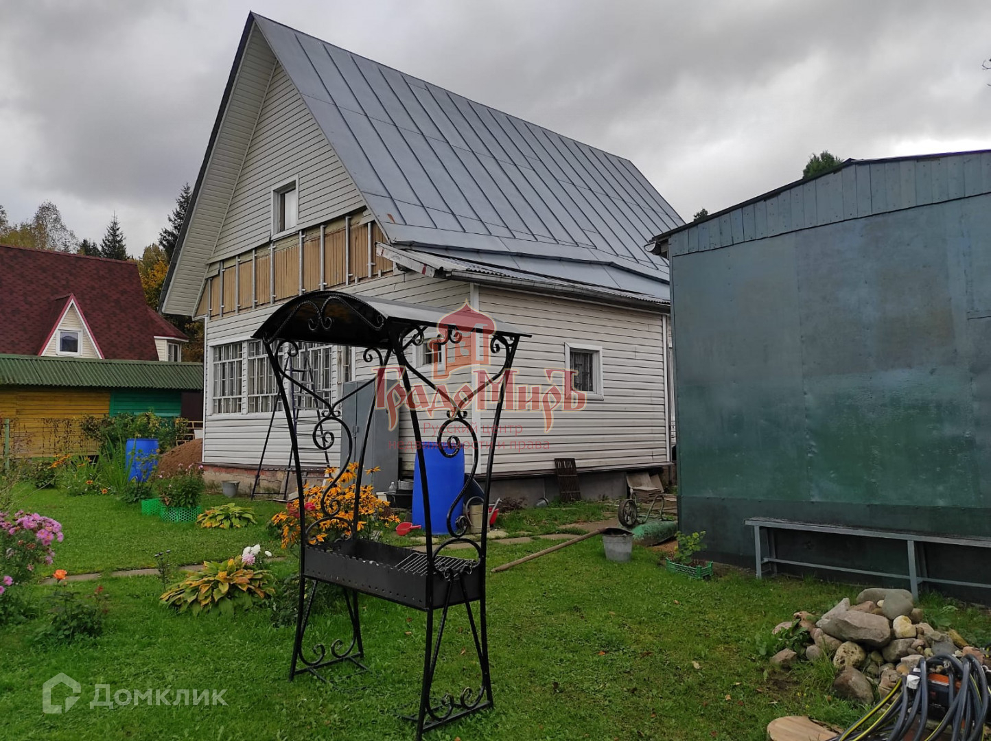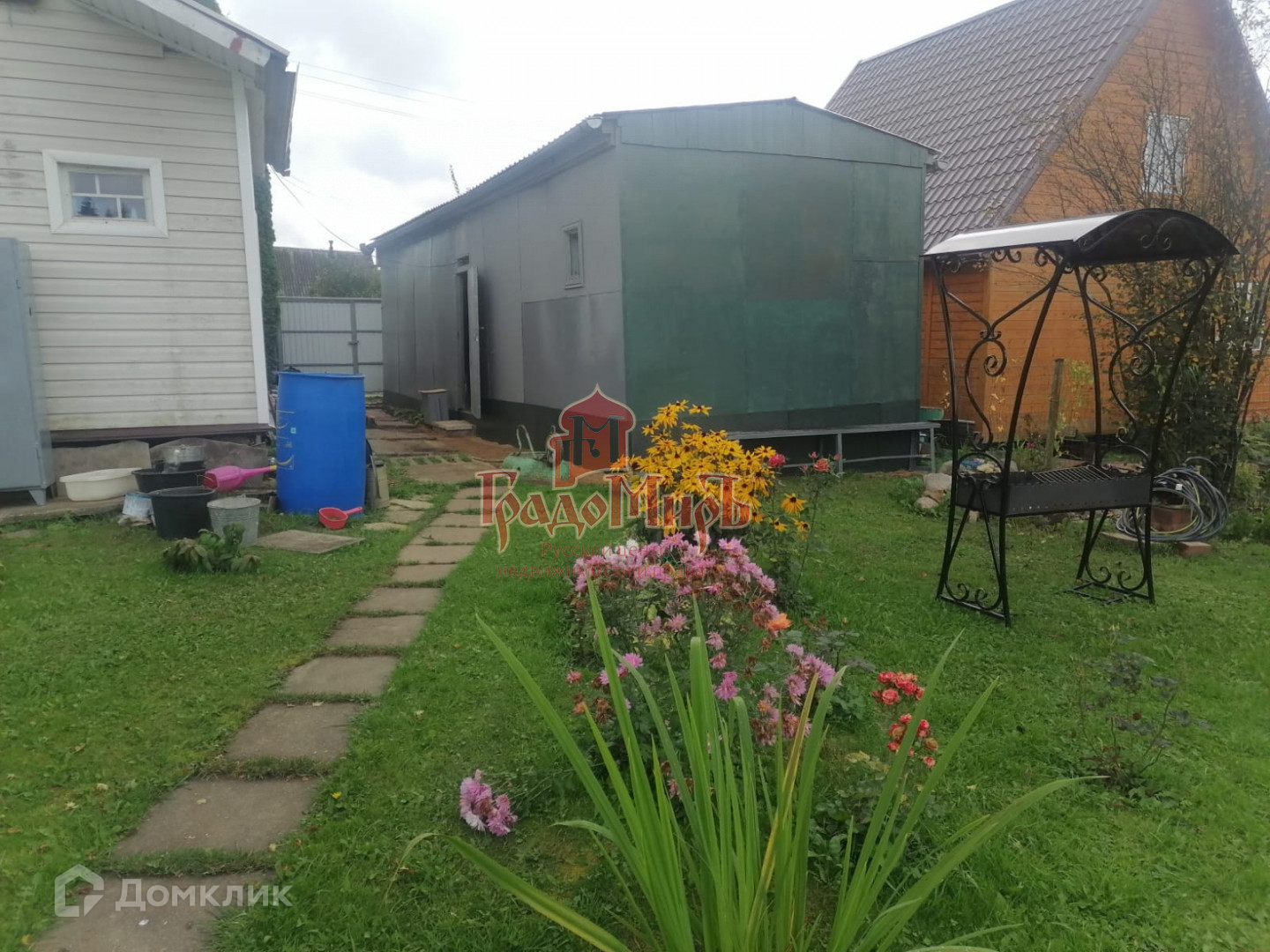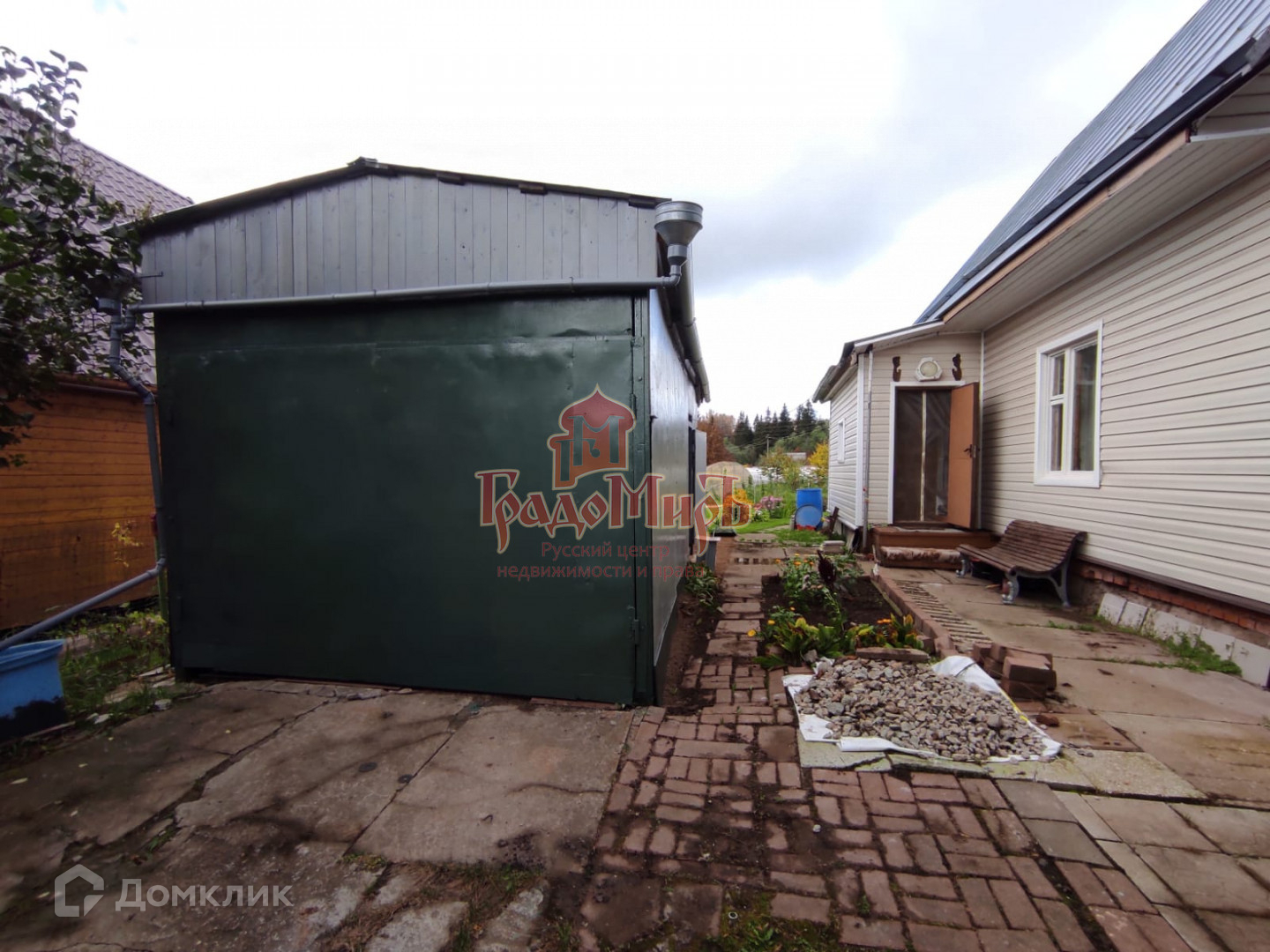 Рядом с домом большой гараж. Разделен на две части.