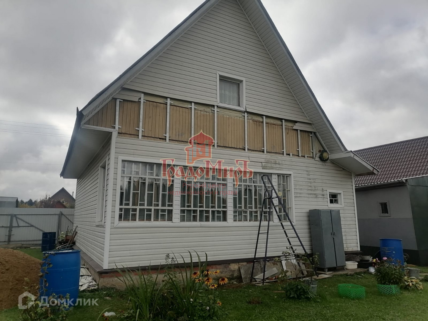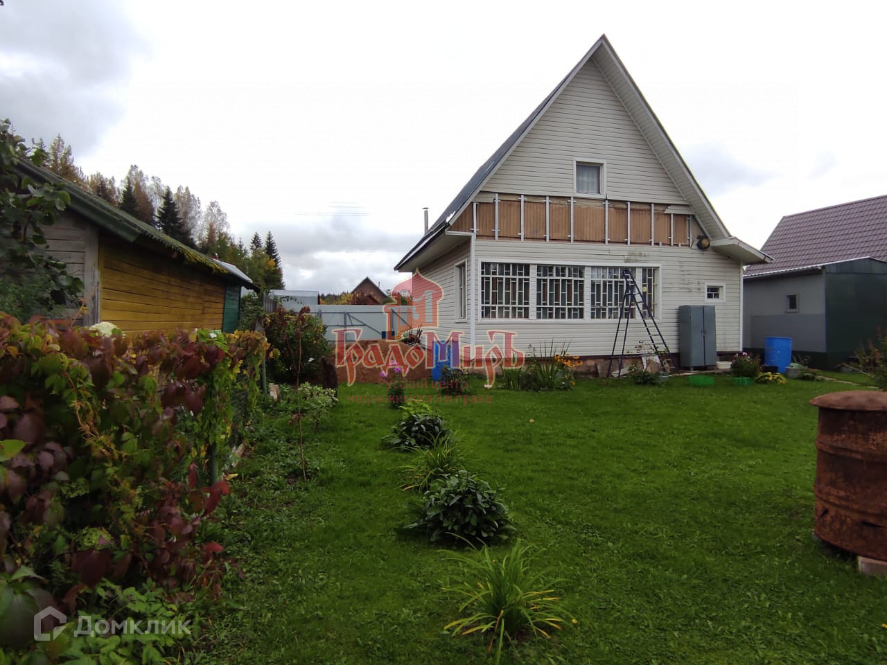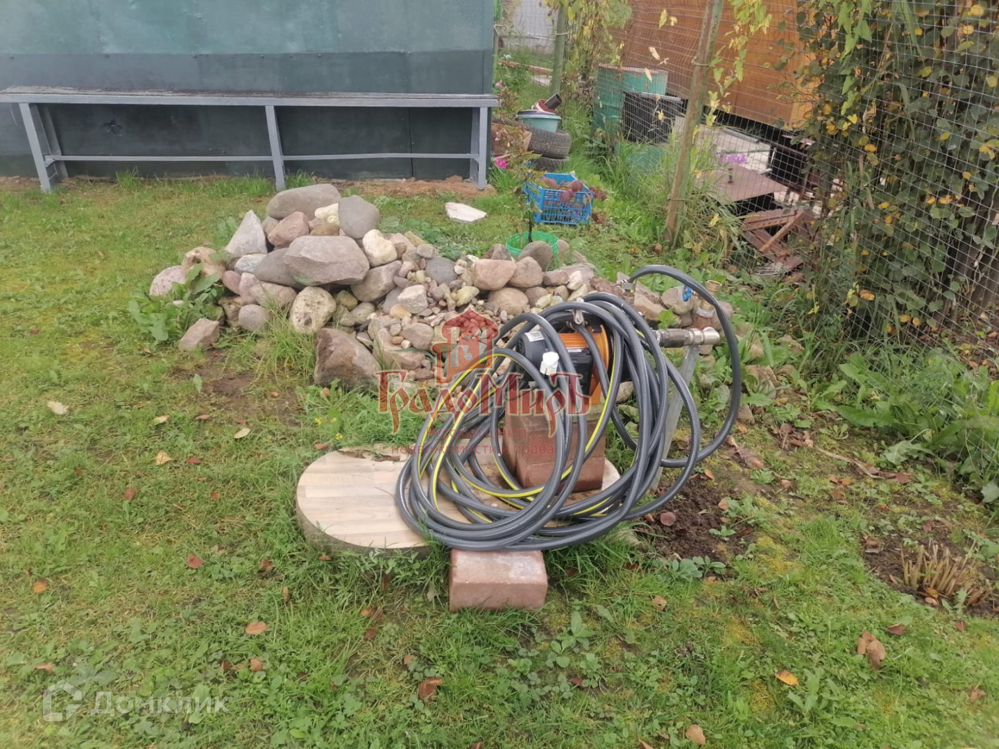 Рядом с домом большой гараж. Разделен на две части.