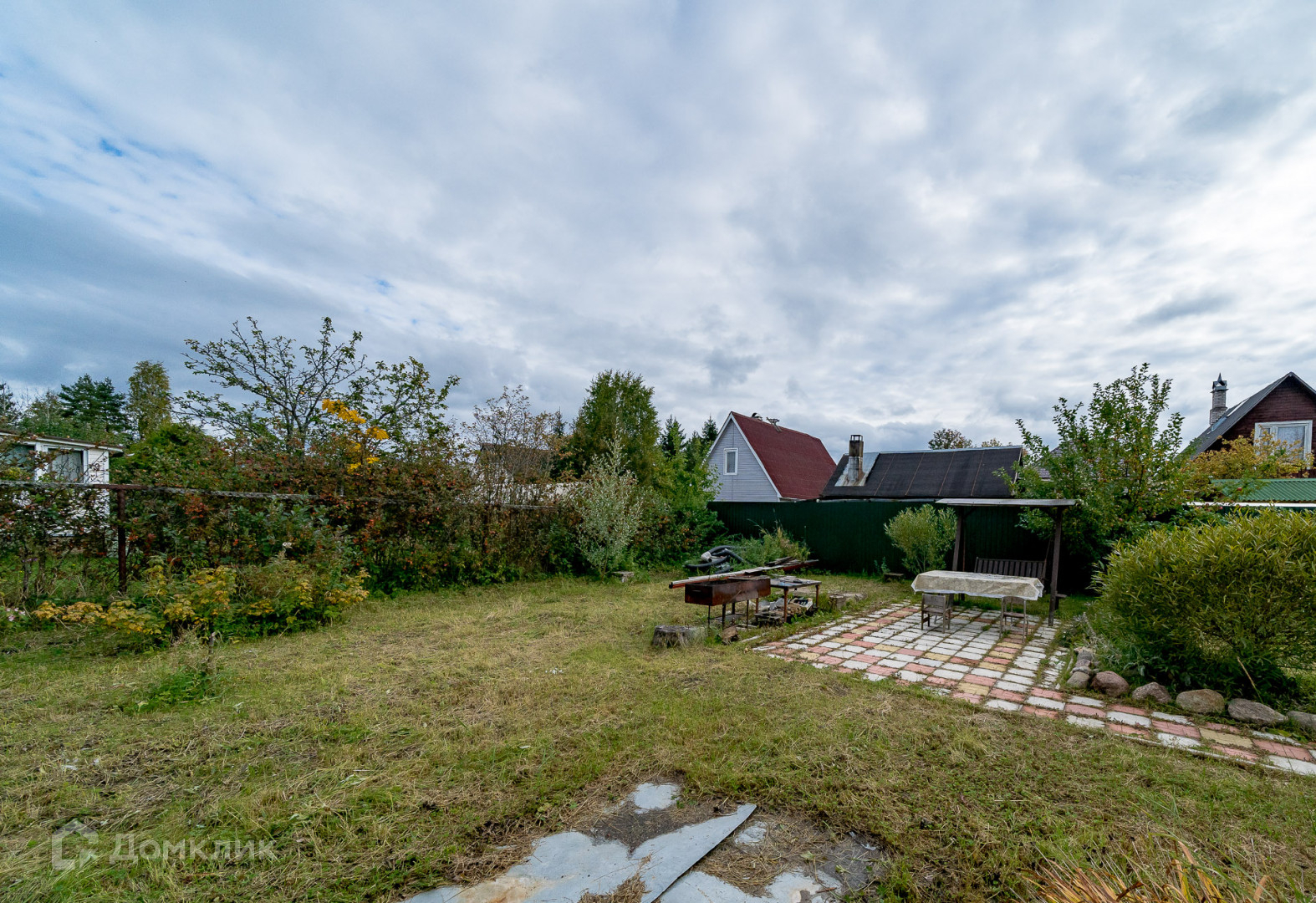 Участок – 6 соток, сухой, выполнен дренаж. На участке есть хозблок из газобетона, мангальная зона с плиткой, фундамент для бани, плодовые деревья и кустарники (яблоня, черноплодная рябина, смородина), многолетние цветы. Большинство соседей проживает круглогодично. Зимой все дороги чистят. СНТ достаточно большое, около 300 жителей. Въезд через КПП с шлагбаумом. Взносы – около 11 т.р.