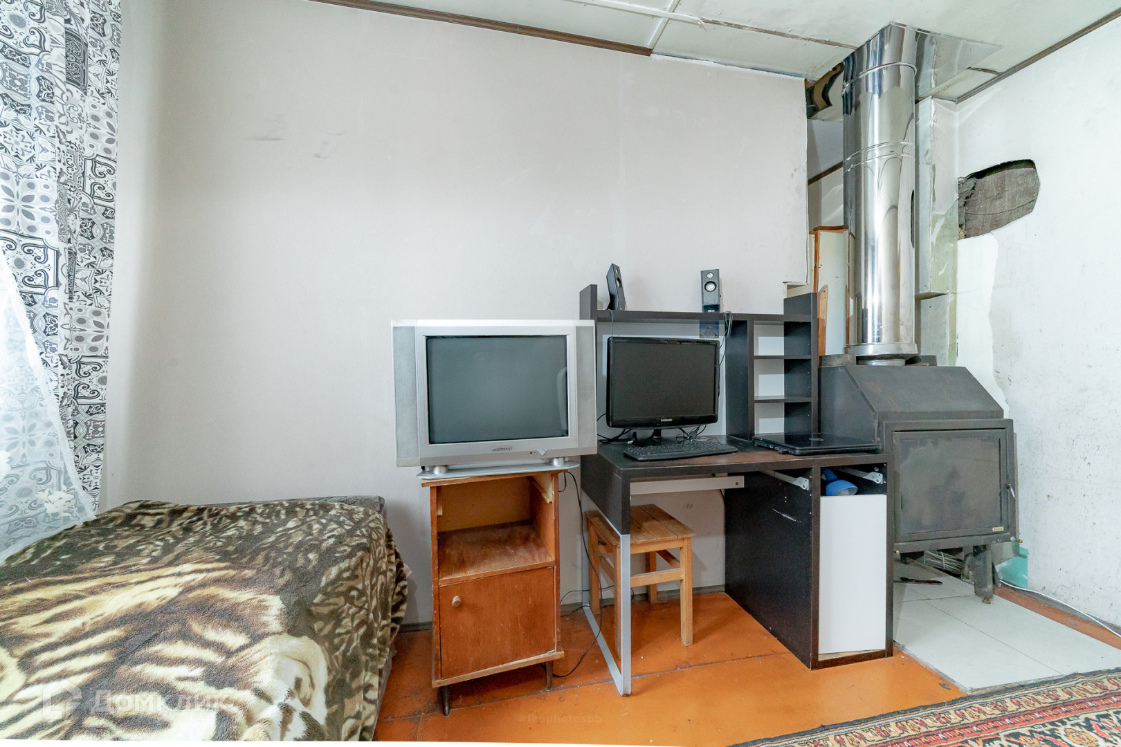 Дом для постоянного проживания, построен по каркасной технологии с утеплением. Отапливается печью + камином и энергоэффективными конвекторами. Фундамент – блочный. Окна – стеклопакеты. Крыша – ондулин. Водоснабжение – поселковая скважина. Теплый водопровод проведен в ванную комнату. Электричество – 15 кВт, проведена новая электропроводка. Канализация септик.