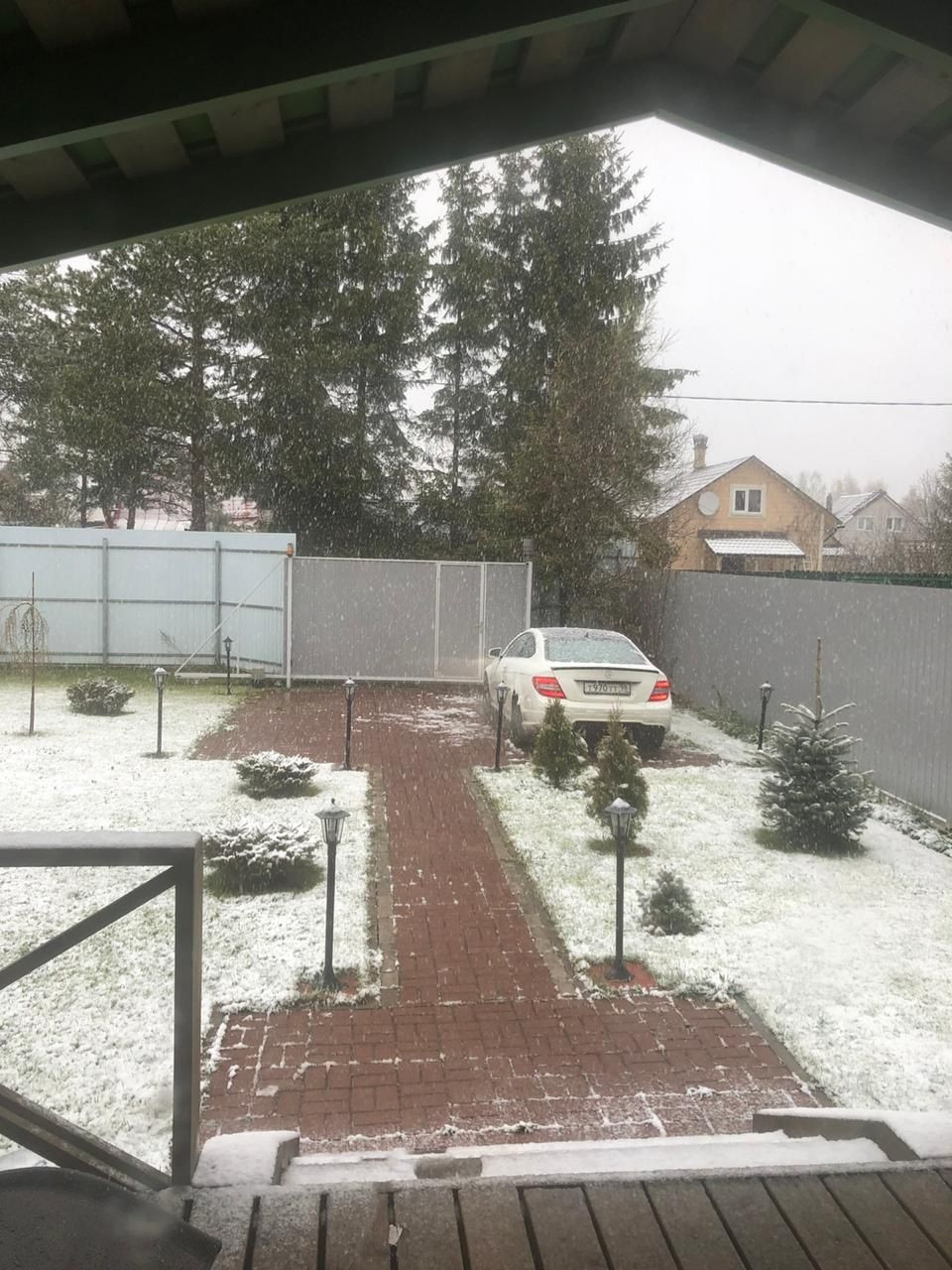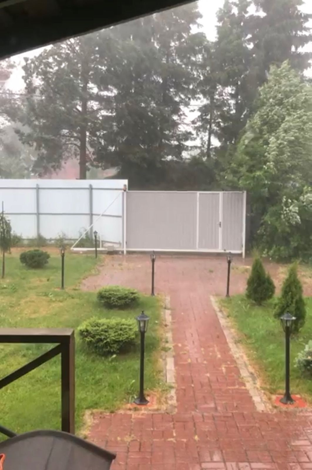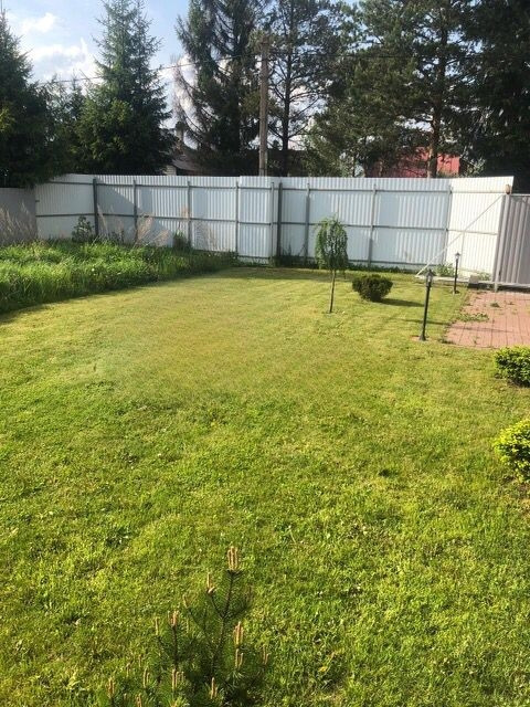 Участок: выровнен песок, щебень, геотекстиль, газон. По участку установлены сенсорные фонари.