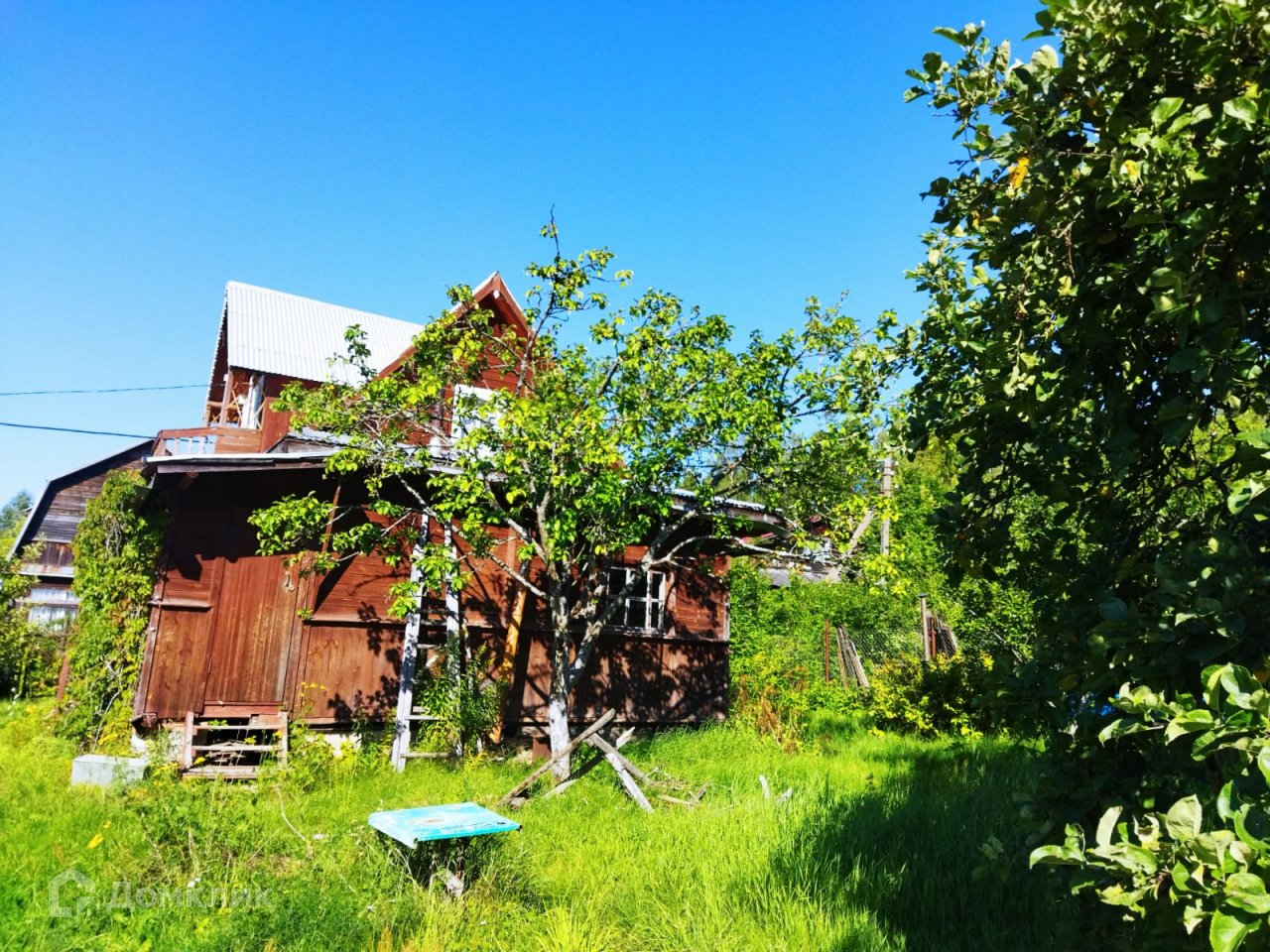 №323246 Садовый дом 60 кв. м. из бревна 1998 года постройки на участке 6 соток, огорожен.  1 этаж- 2 комнаты, кухня, 2 коридора и лестница наверх. 2 этаж- 2 комнаты, холл, балкон, кладовки,погреб бетонный 2,2 м в высоту. Отопление- печь, батареи. Вода - летний водопровод, колодец. Эл-во 5 квт, возможно увеличение. Участок сухой, высокий, солнечный, отличное расположение, через 30м лес, карьеры, озеро Черное в 1км, Бездонное, Лемболовское 2км. На участке есть плодовые, цветы, кусты, парник новый, плодородная земля. Снт охраняемое, магазин круглый год..