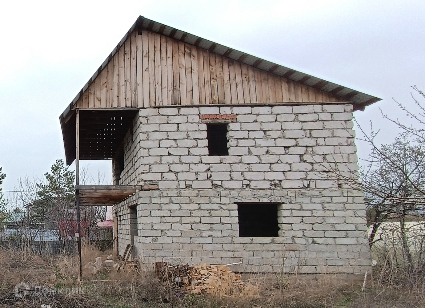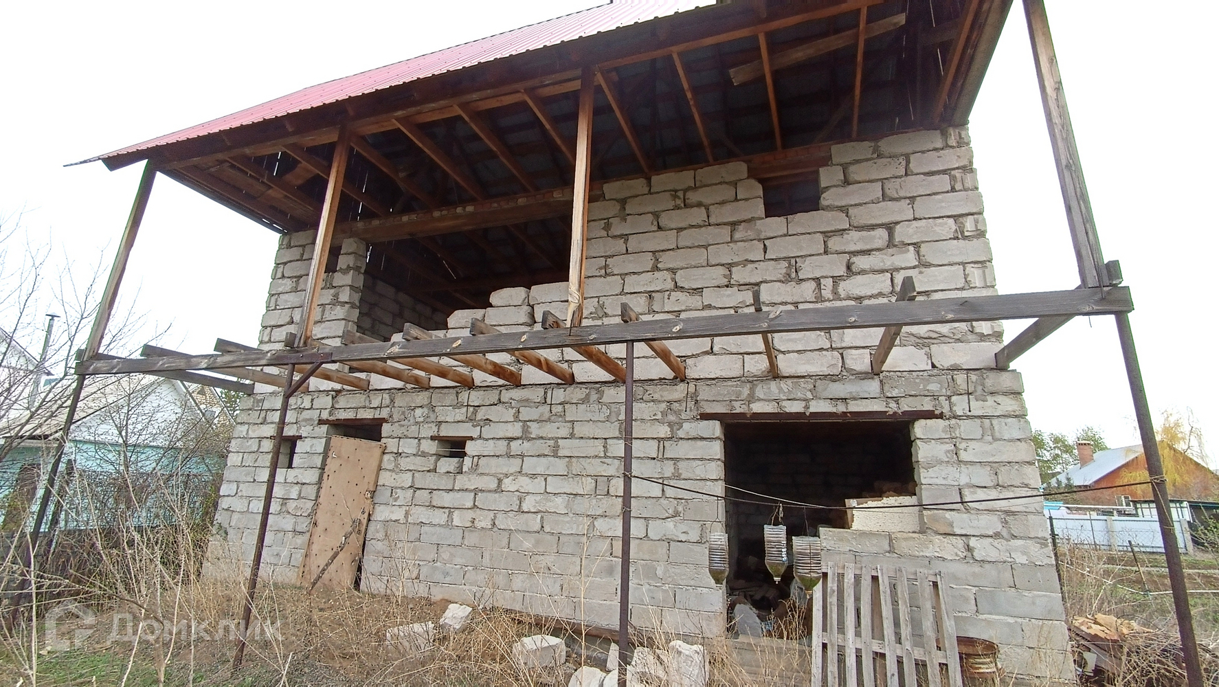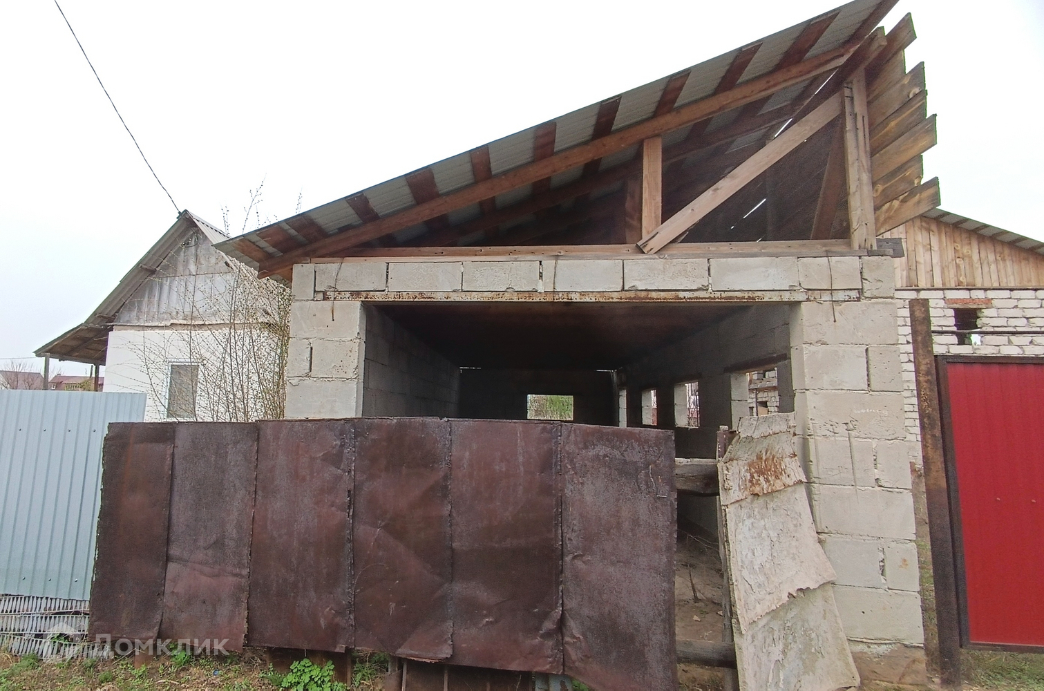 Дом в стадии строительства, оформлен как жилой! Стены из блоков, хороший прочный фундамент. Первый этаж: комната, топочная, лестница на второй этаж, баня с отдельными выходами в дом и на улицу с большой гостевой комнатой, моечной и парной. Второй этаж: две комнаты, санузел. Крыша   красный профлист.