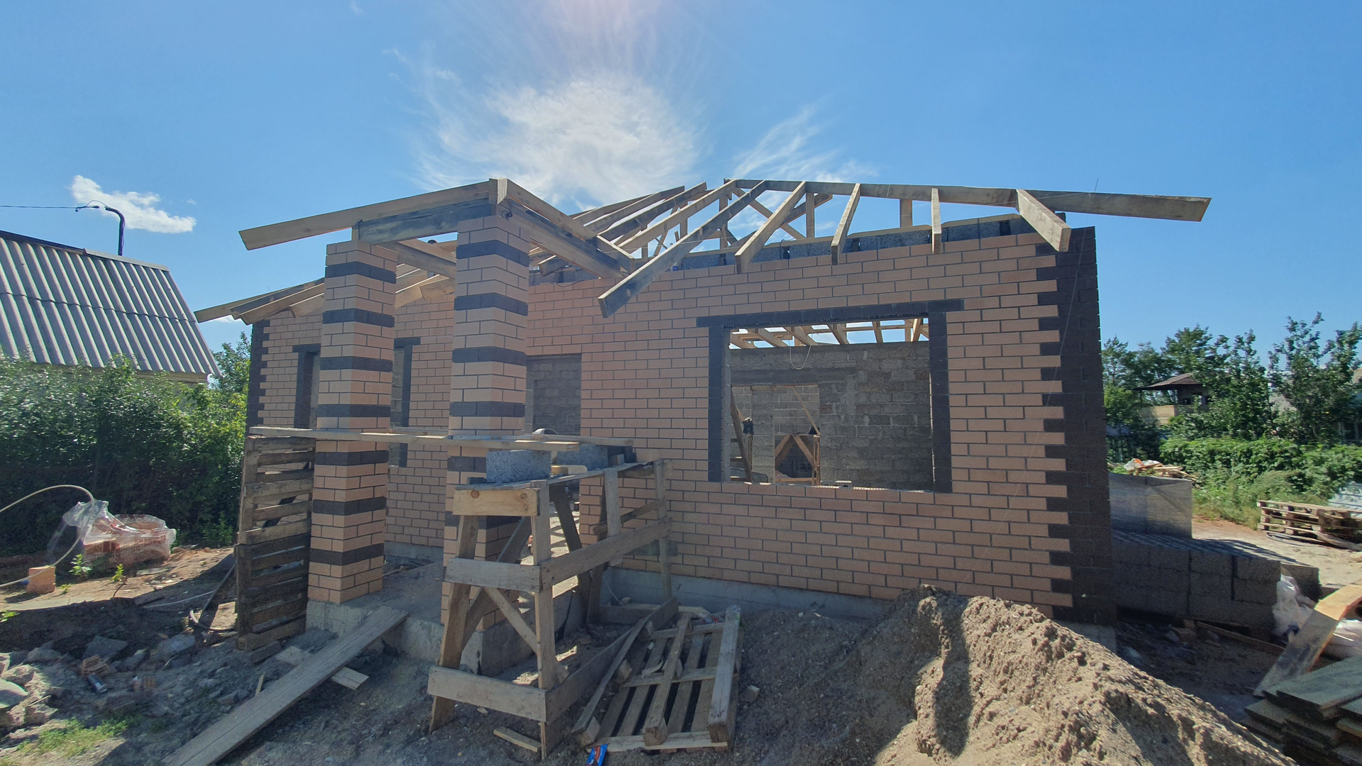 Дом строится, сдача в сентябре 2023 года в предчистовой отделке.