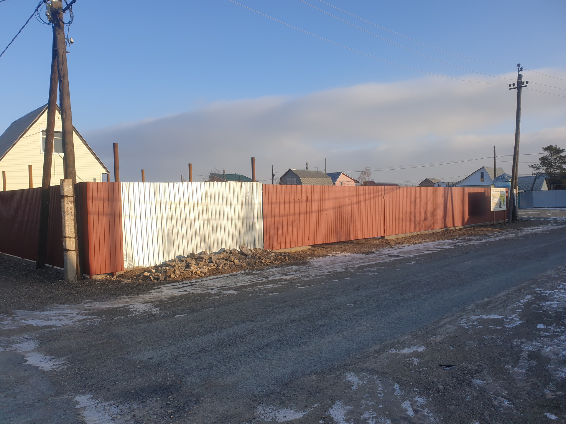 Участок расположен на центральной улице, рядом находится охрана, автобусная остановка, продуктовый магазин. Зимой центральная дорога чиститься от снега.