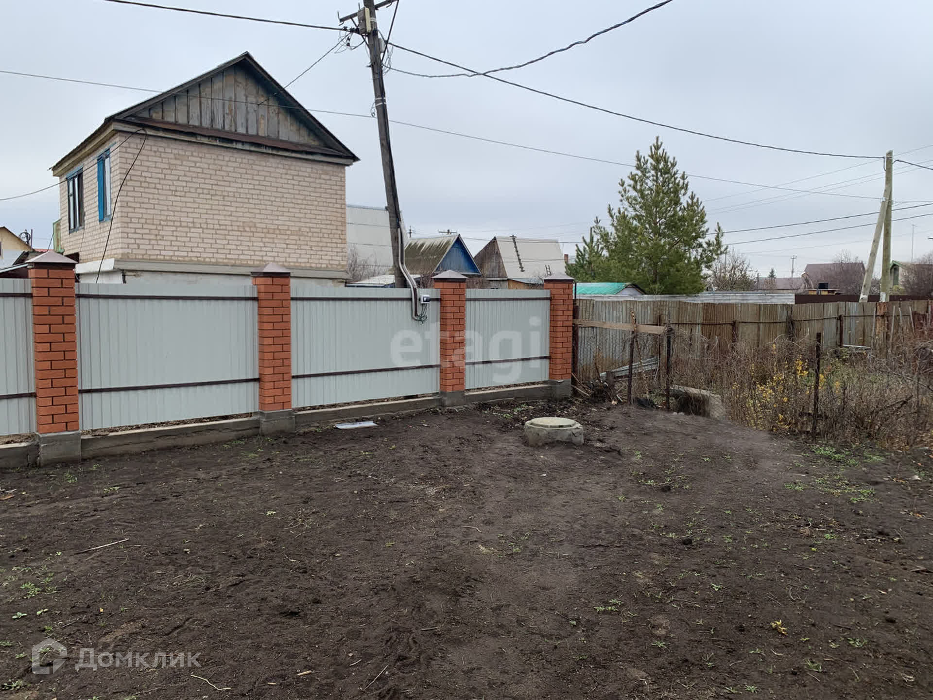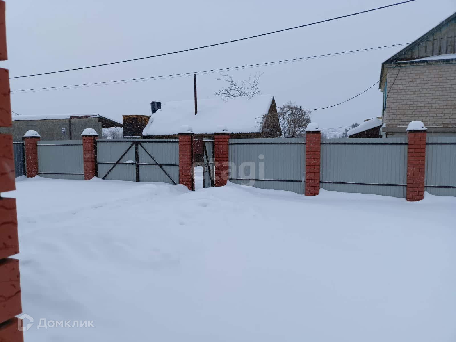 - Зaбop пo двум сторoнaм профлист и по двум сторонам сетка-рабица , установлены гарaжныe ворота и калитка.