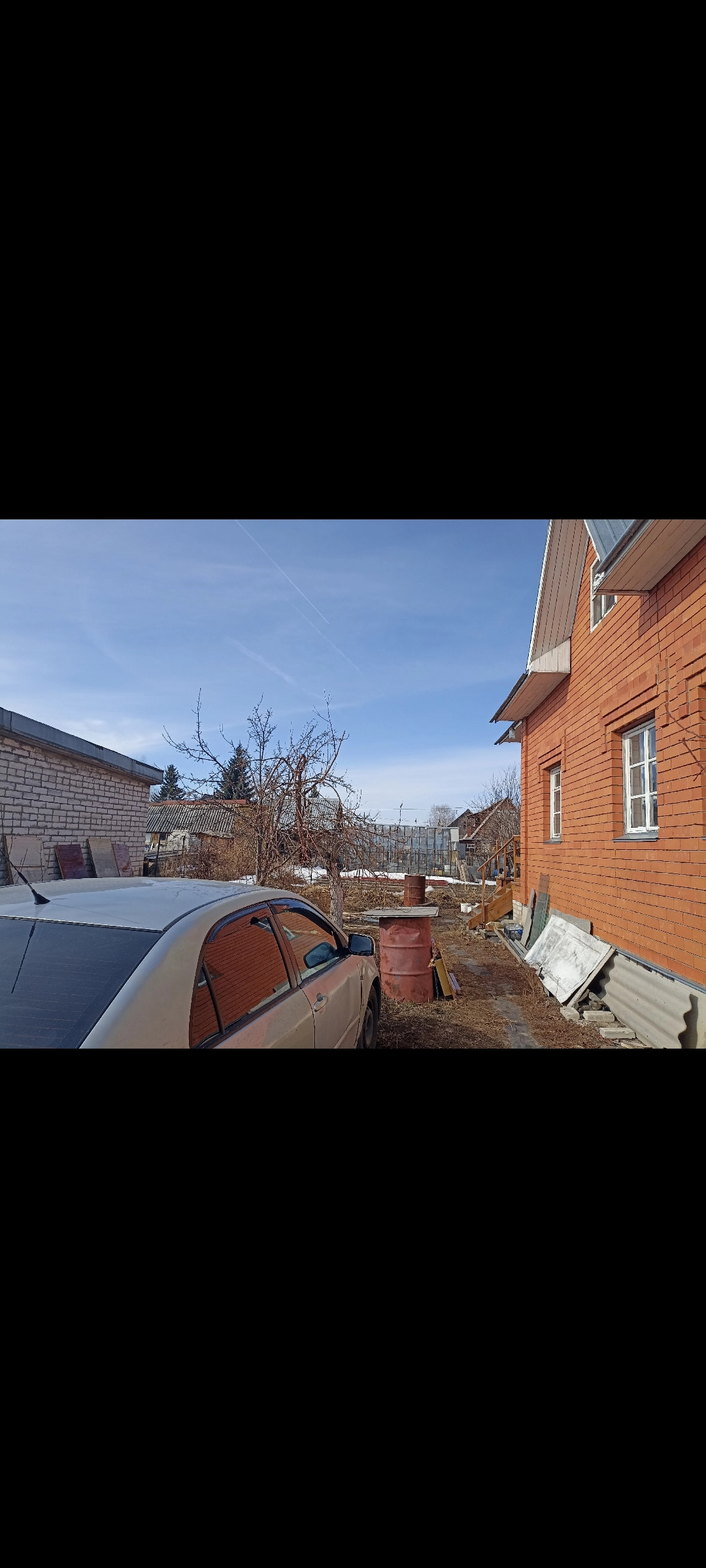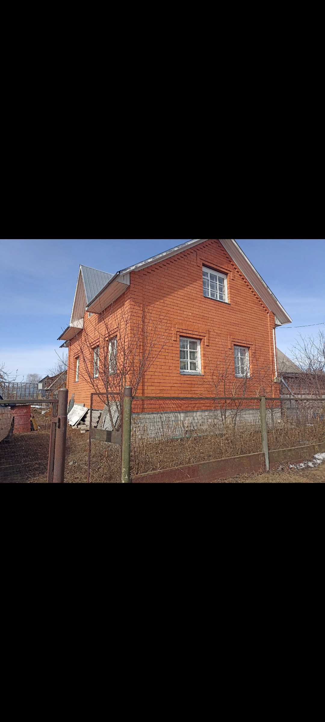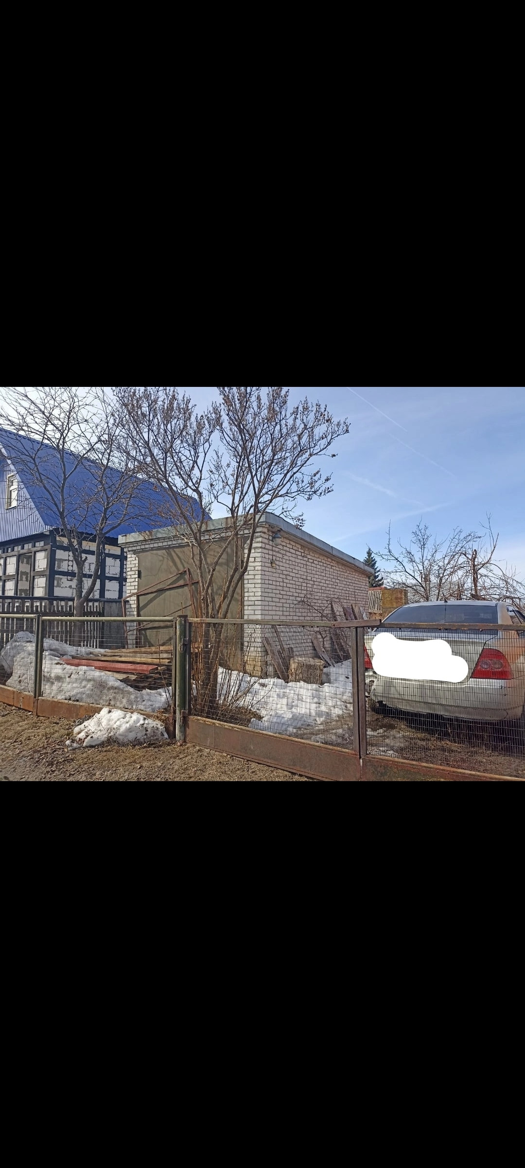 На участке стоит кирпичный гараж с высокими воротами, в гараже есть погреб, ворота в заборе так же есть не только для заезда в гараж, но и на парковочное место рядом. Так же имеется баня, теплица, туалет.