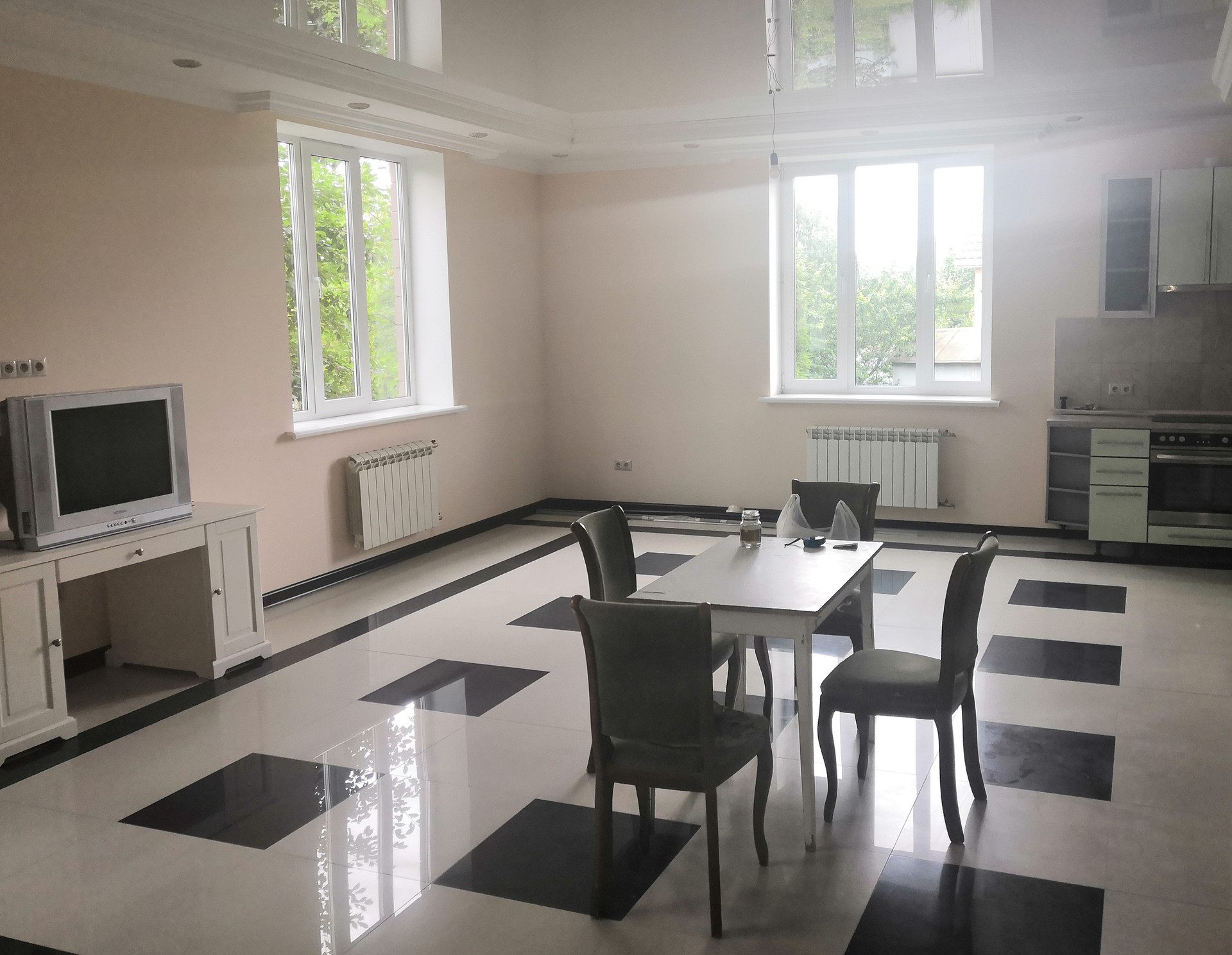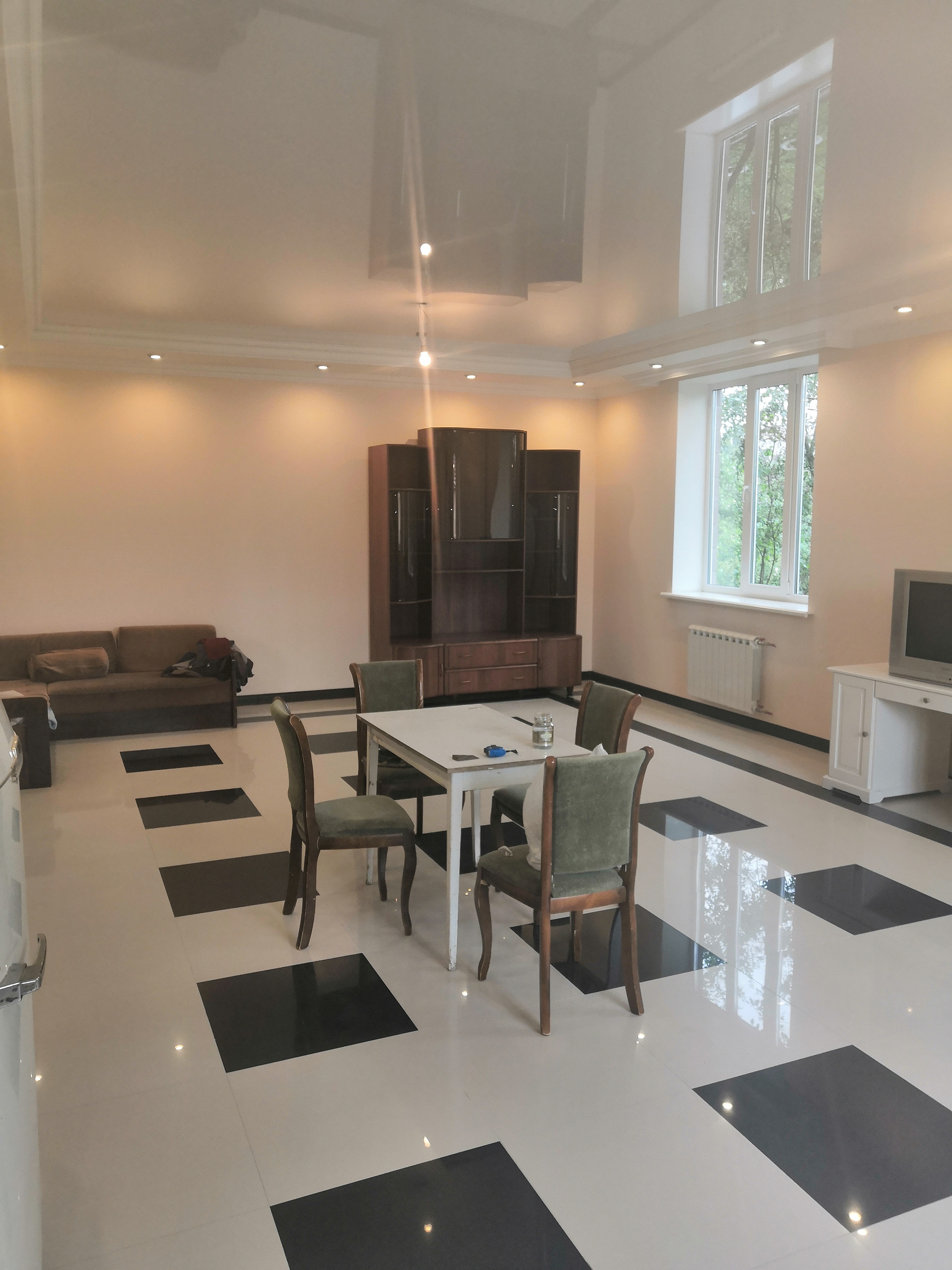 Дом блочный с железобетонными плитами перекрытия, кровлей из металлочерепицы, пластиковыми стеклопакетами, современным ремонтом (потолки натяжные, полы керамогранит, в жилых комнатах – ламинат, бетонная лестница отделана деревянным шпоном), частично меблирован (кухонный гарнитур, столовая зона, диван, детская комната, сантехника). Подвал сухой высотой 2,6 м.