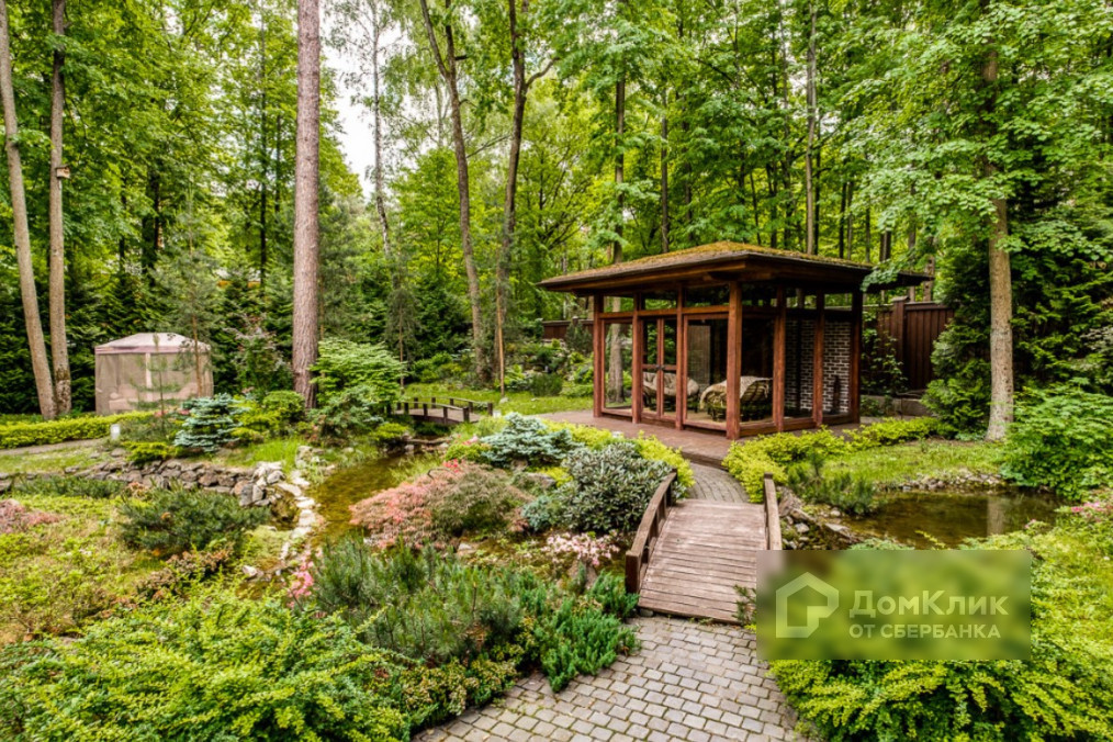 На участке расположены: гараж на 3 автомобиля, на втором этаже хоз. блок; гараж на 1 автомобиль; чайный домик в японском стиле.