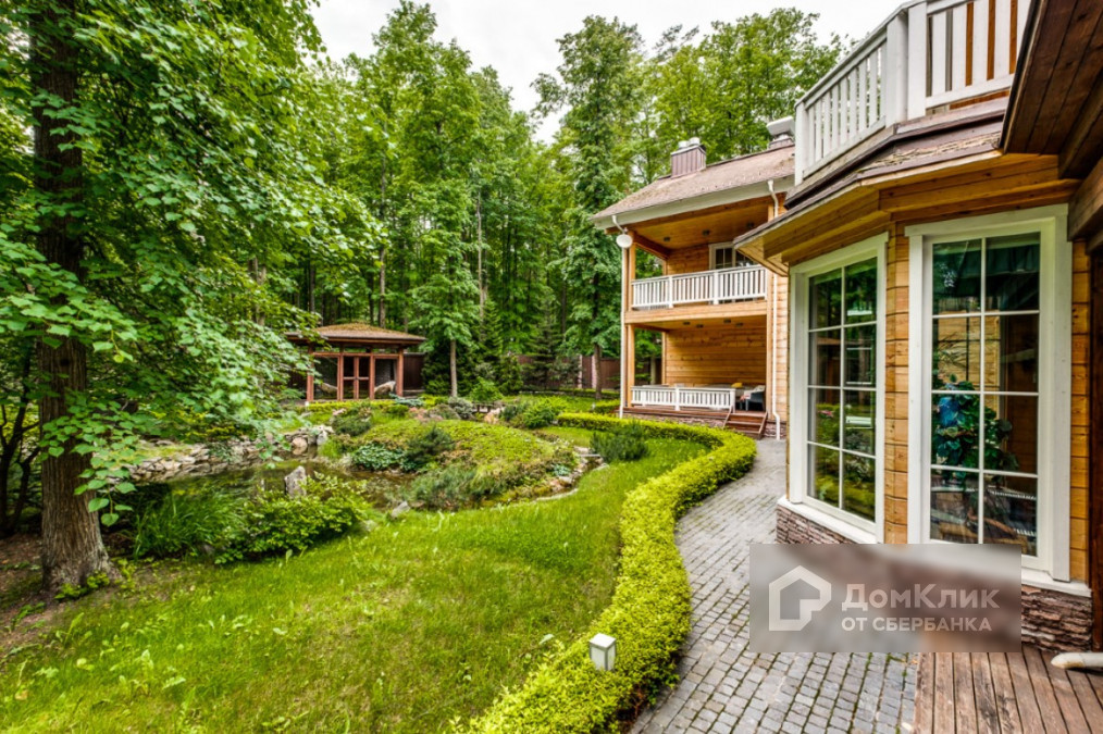 На участке выполнен отличный ландшафтный дизайн - система каскадов, фонтанов, искусственный прудик.