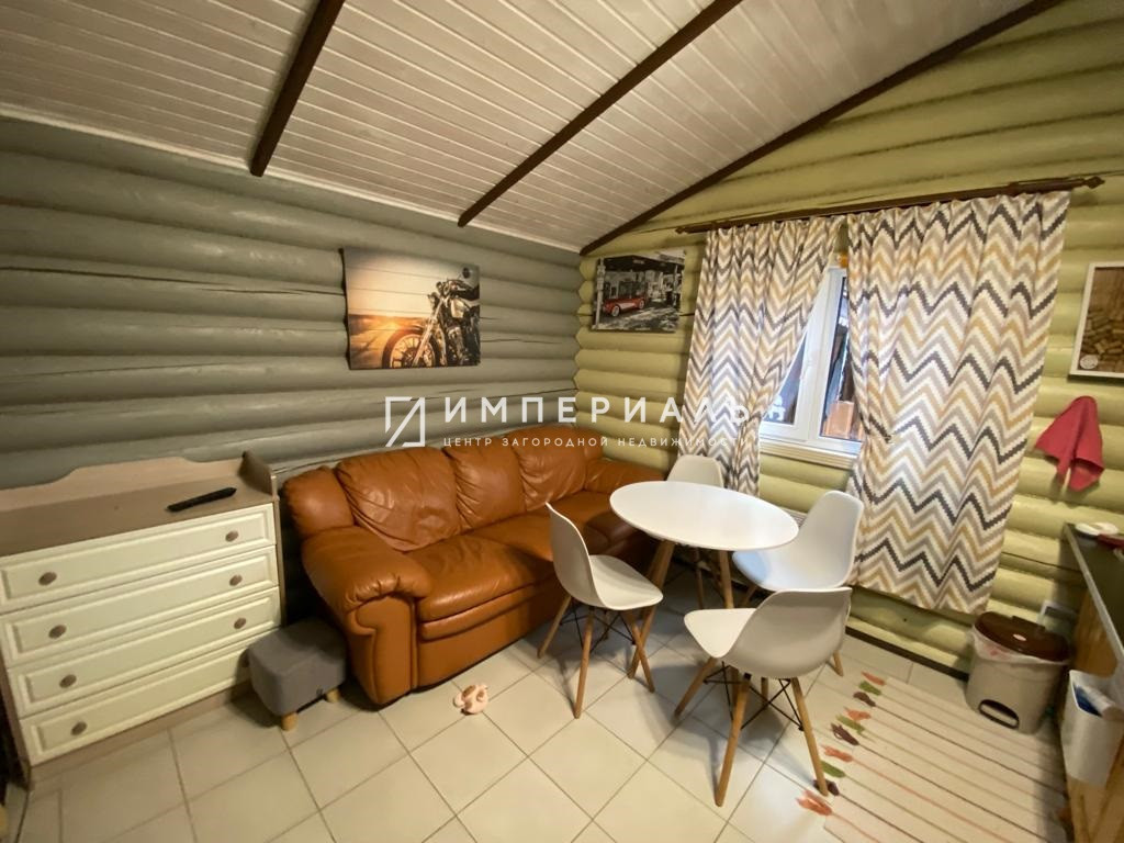 Баня: (42 кв.м ), ленточный фундамент, стены – бревно ( 200 мм). Окна – ПВХ. Печь – камин. Теплые электрические полы.