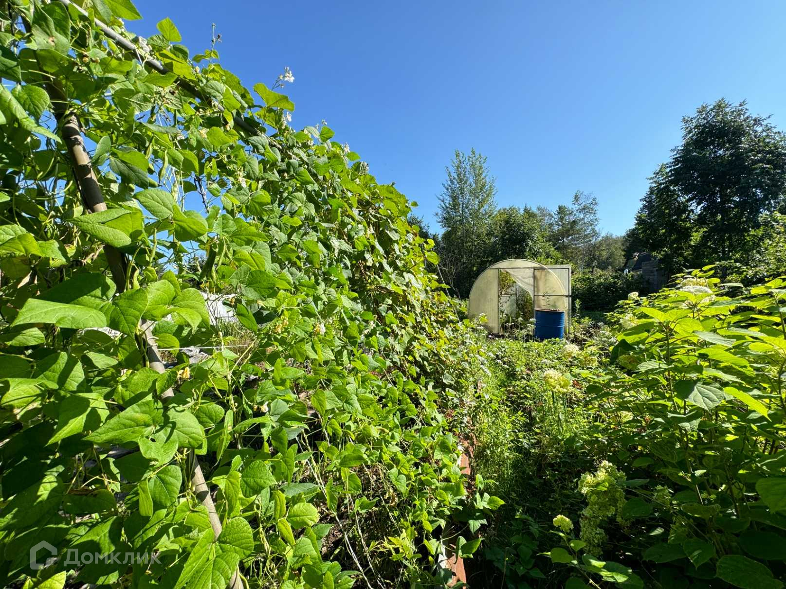 Садовые деревья и кустарники: смородина, малина, жимолость, крыжовник, малина, слива, клубника, груша, жасмин, калина.