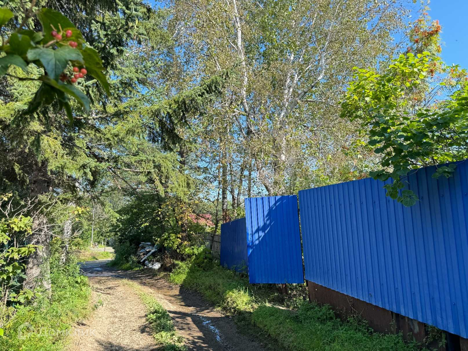 - Участок ровный, правильной формы. Огорожен со сторон соседних участков сеткой-рабицей, со стороны дороги металлический забор;