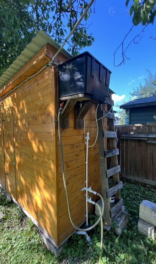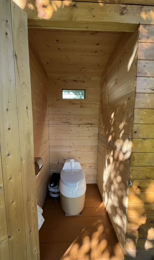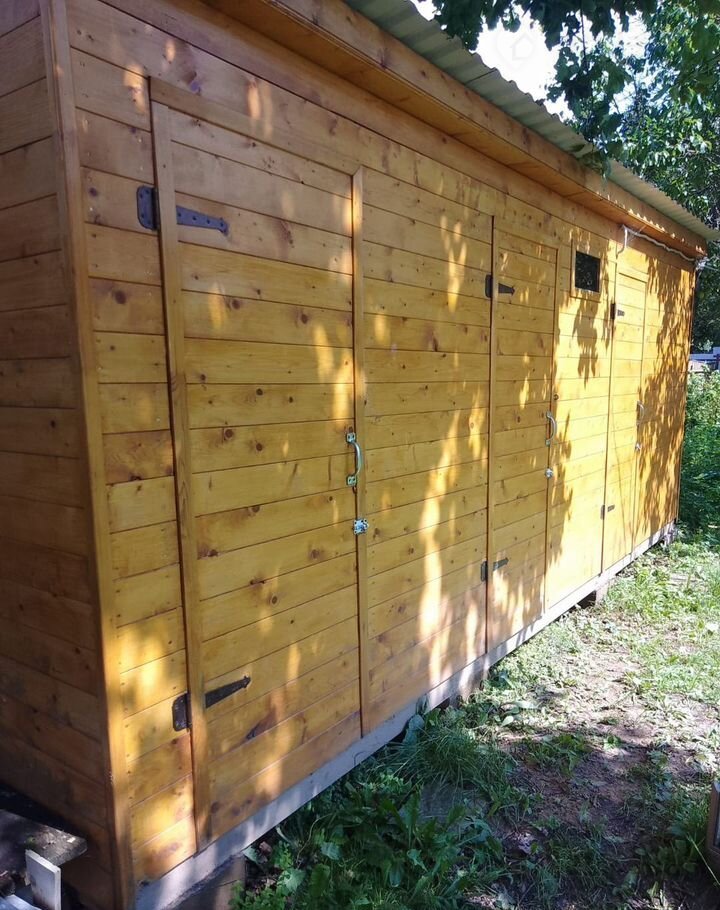 На участке новый хозблок 6х2,3 м - строение разделено на три помещения: санузел с биотуалетом, хозпомещение под садовый инвентарь, душевая с электроводонаревателем.