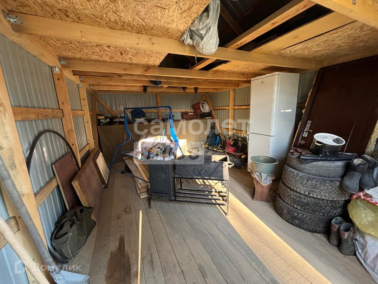 Дом установлен на винтовых сваях, его размер 6*6 с летней террасой 2*6, построен из бруса. В доме два этажа, второй этаж без отделки, сан узел в доме. Гараж размером 4*6.  Все постройки 2022 года.