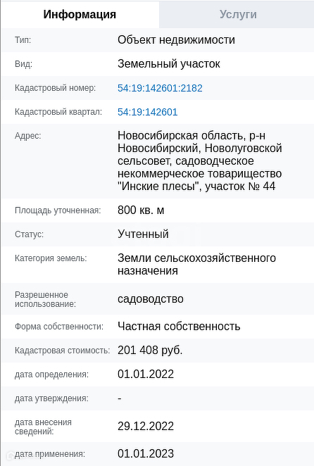 Продам земельный участок в СНТ "Инские плесы" площадью 8,1 соток. Участок расположен в живописном уникальном месте на берегу реки Иня. Адрес по документам: Новосибирская область, р-н Новосибирский, Новолуговской сельсовет, садоводческое некоммерческое товарищество "Инские плесы", участок № 44 Площадь: 800,00 м2 (квадратный метр) Форма собственности: частная Разрешенное использование: для ведения гражданами садоводства и огородничества По документу числится: садоводство Категория земель: земли сельскохозяйственного назначения. Номер в базе: 9622908. Район: Инские плесы СНТ.
