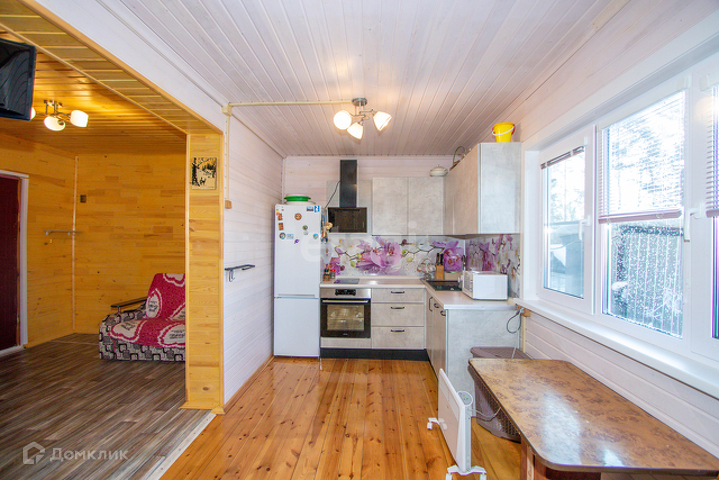 В доме сделана дорогая отделка: утепление стен/полов, всё обшито дорогой вагонкой, заменена вся электрика (медь), встроенная кухня сделана на заказ (раковина из искусственного камня), горячая вода в доме и в душе, пластиковые окна с римскими шторами, тёплые полы