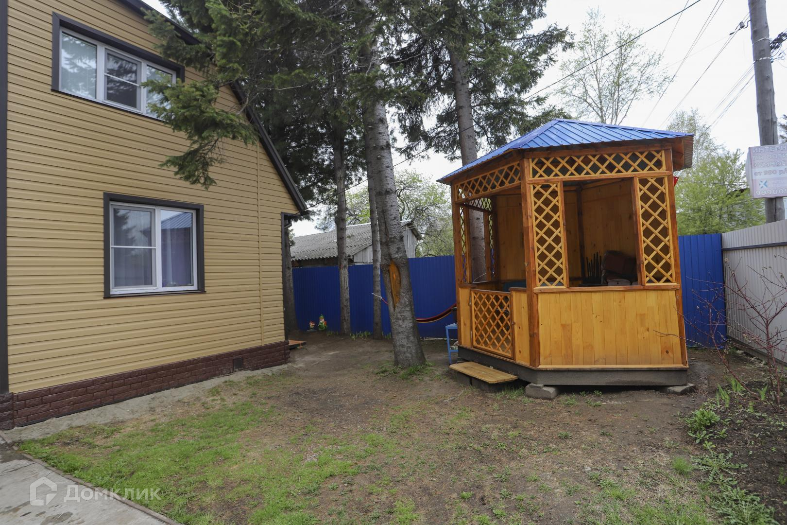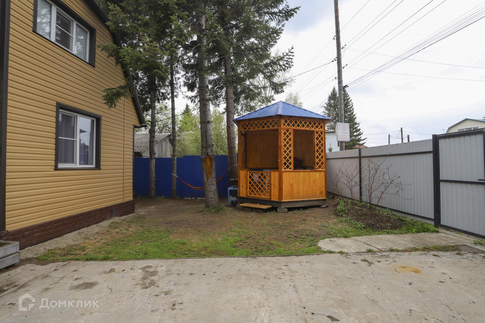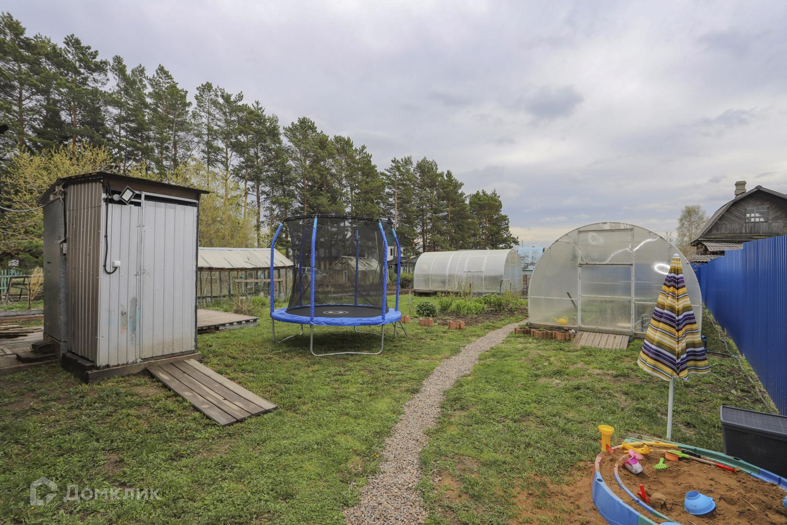 На участке новая беседка на фундаменте, забетонированная парковка, сделаны грядки из бордюра, большая теплица, газон, множество насаждений (смородина, крыжовник, клубника, жасмин, калина, кедры)