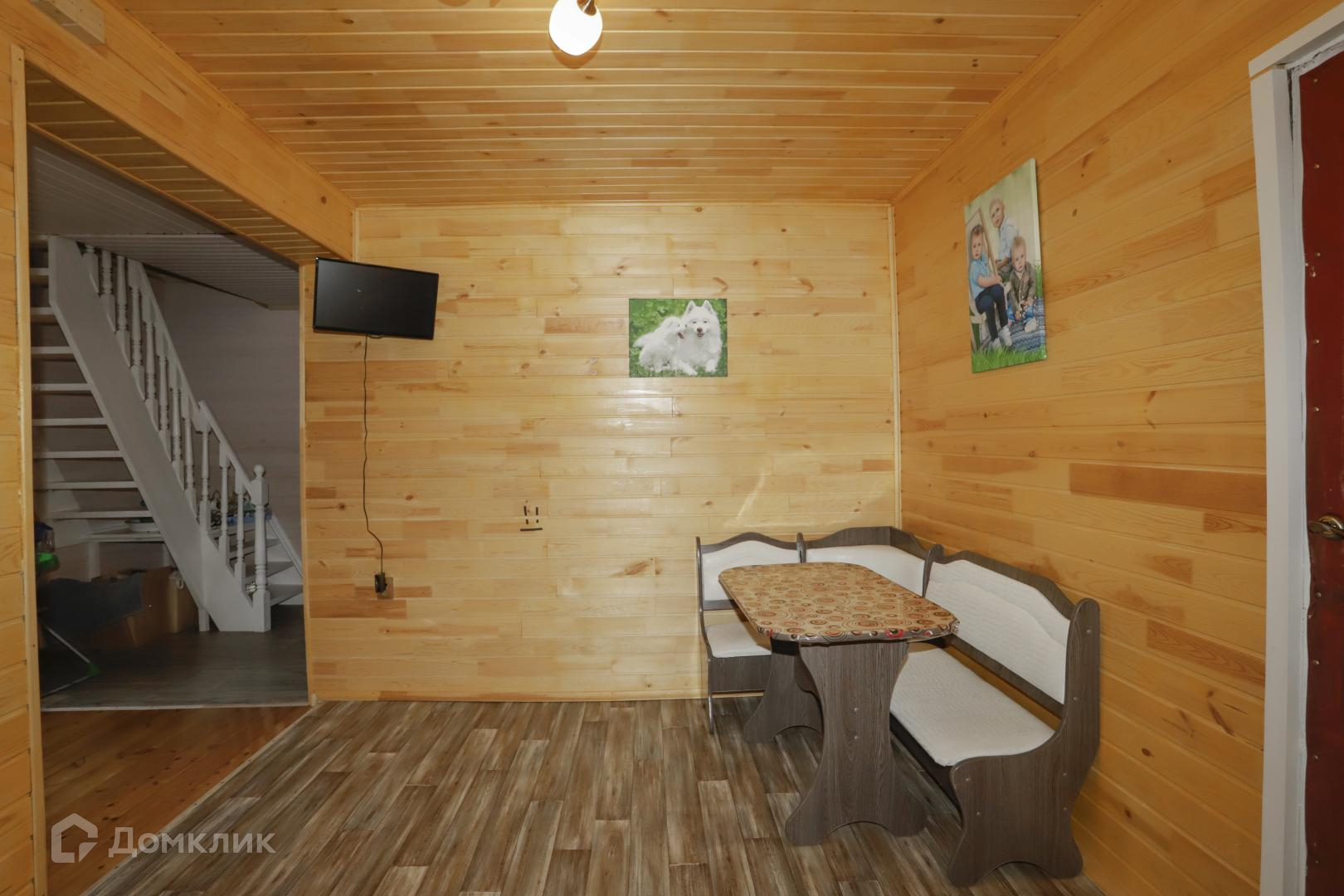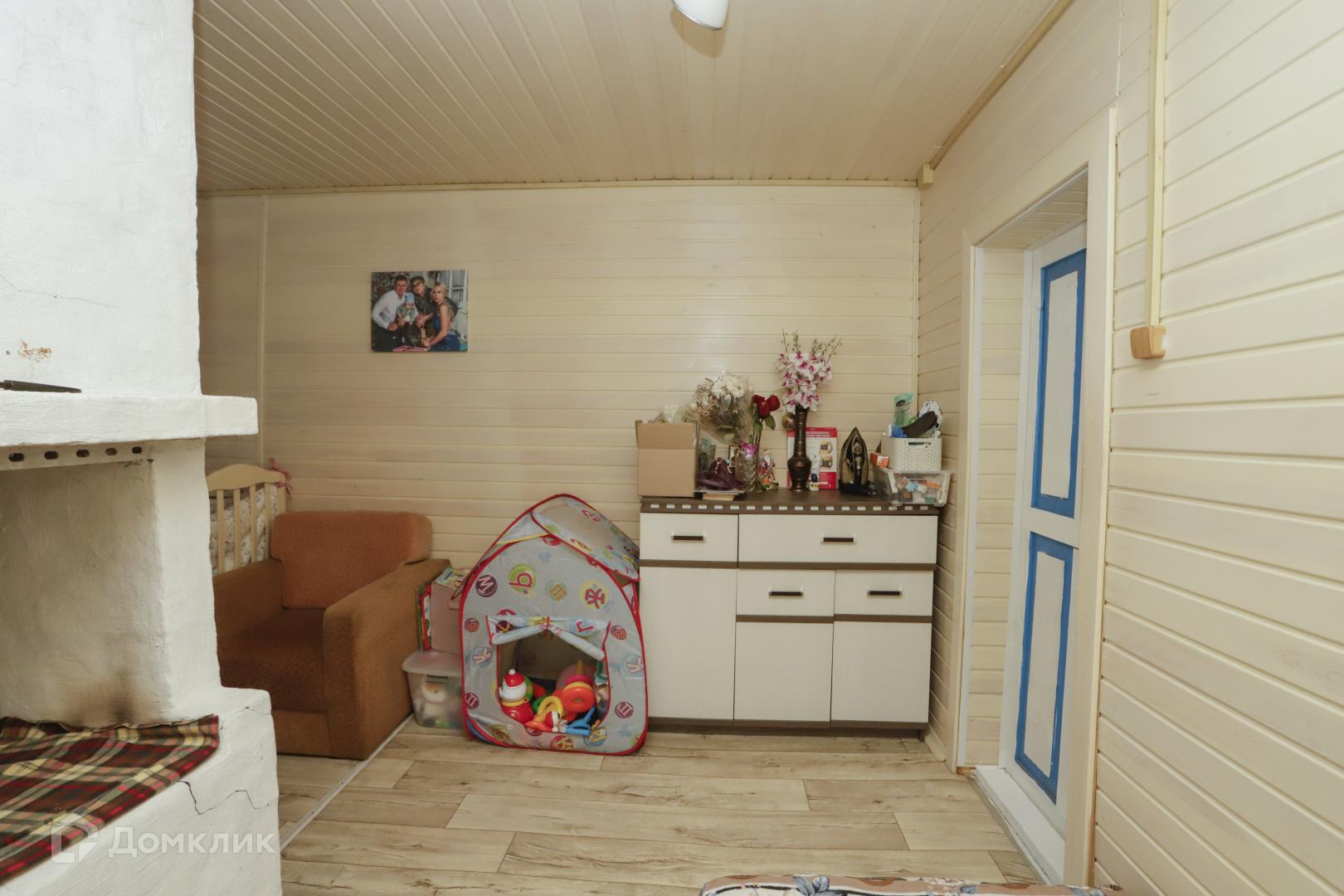 Дом из 18 бруса на ленточном фундаменте, обшит сайдингом. Крыша и забор профлист. В доме сделана хорошая отделка, пол и стены утеплены, обшиты вагонкой. Заменена электрика, сделаны теплые полы, вода заведена в дом (горячая вода в душе и в доме), окна пластик.