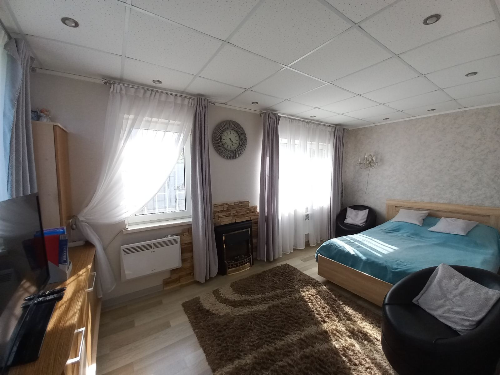Дом полностью утеплён, в каждой комнате висят электрические конвекторы  Ballu. Перекрытия между этажами плиты. Пластиковые окна. Кондиционер.