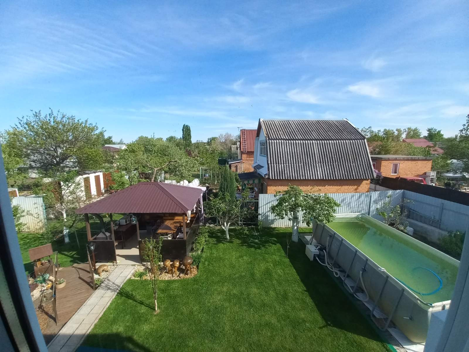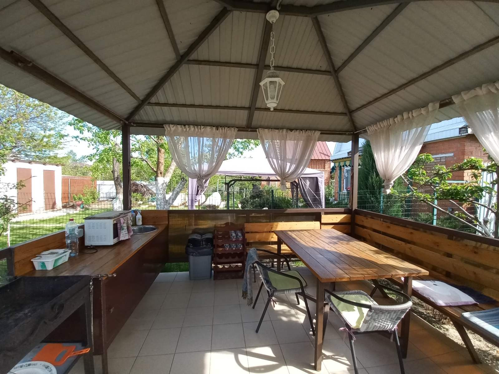 Баня 25 кв.м - просторная комната отдыха, отличный душ, парная. Тёплый пол, водонагреватель на 80 л. Беседка 16 кв.м. скамейки и стол из лиственницы, подведена вода горячая и холодная, мангал. Каркасный бассейн 5,7х2,7х1,4. с системой очистки.