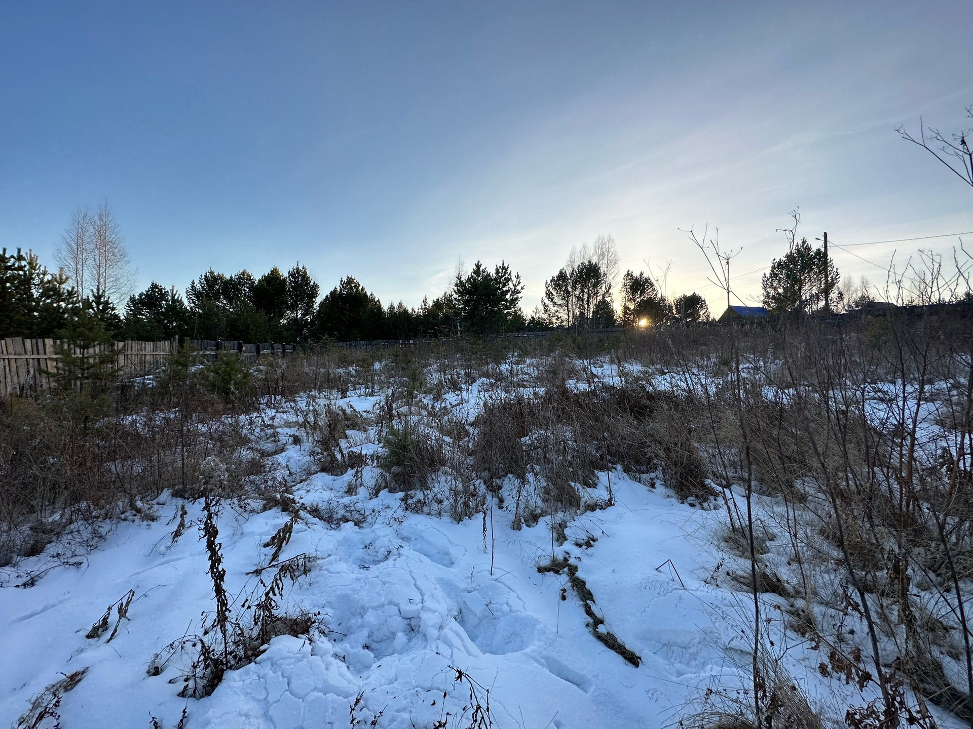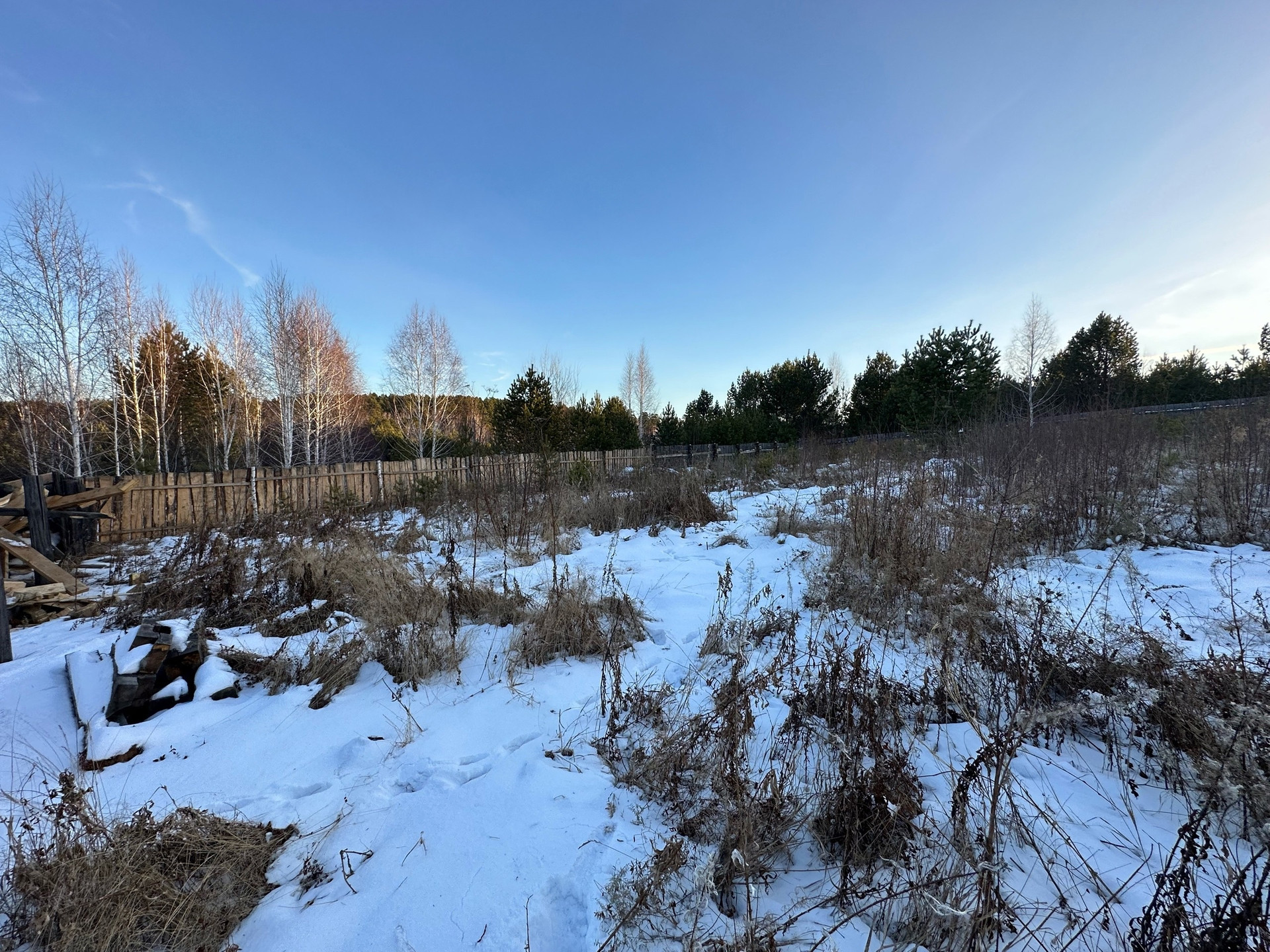 Ровный участок, в собственности, столбы стоят.