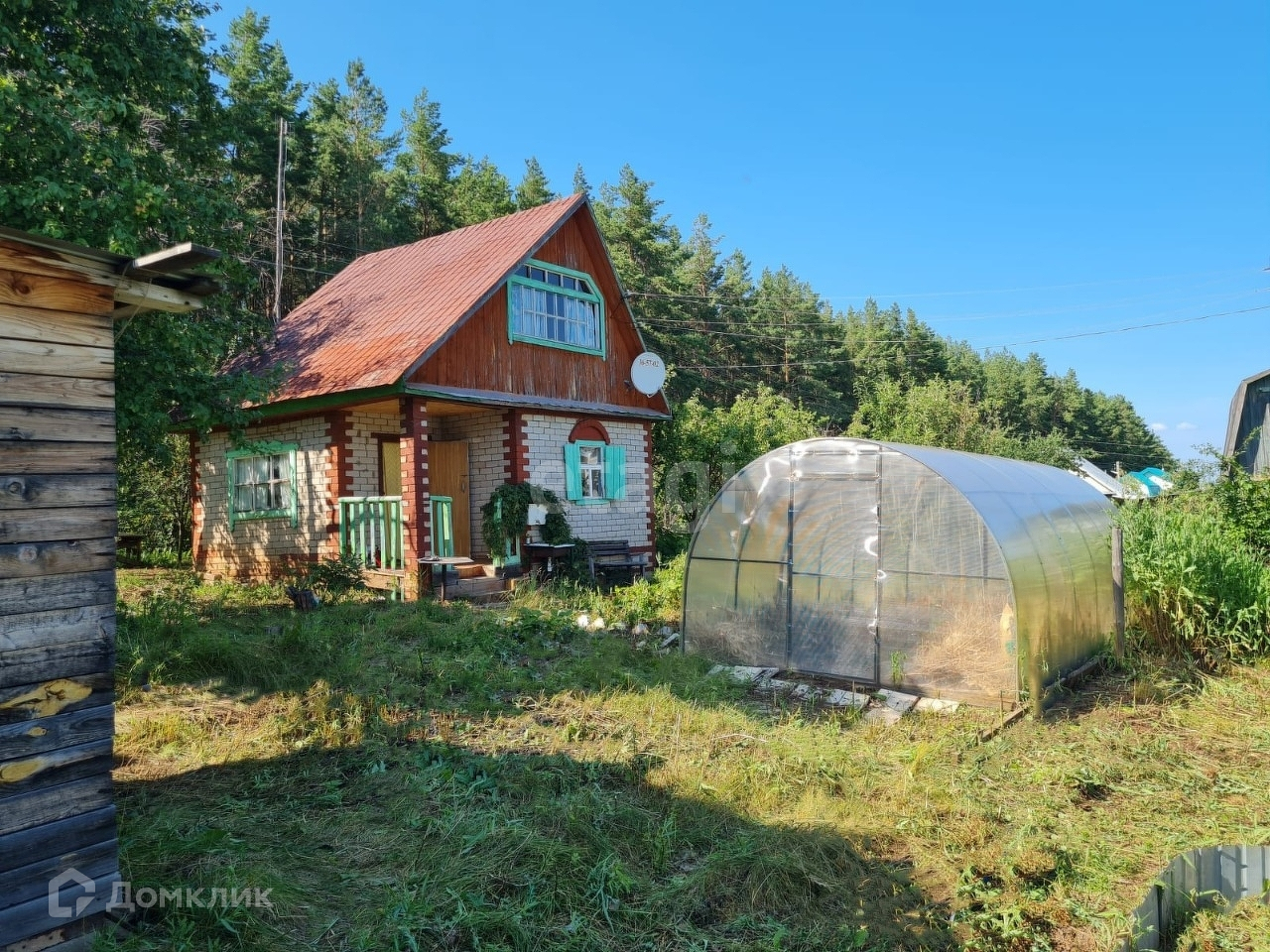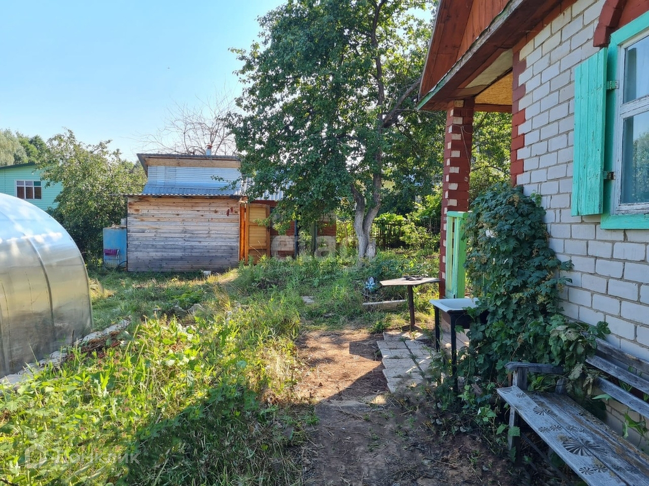 На участке имеется баня, хоз. блок, ёмкость для воды (бак), туалет на улице, теплица, парковочное место за домиком.