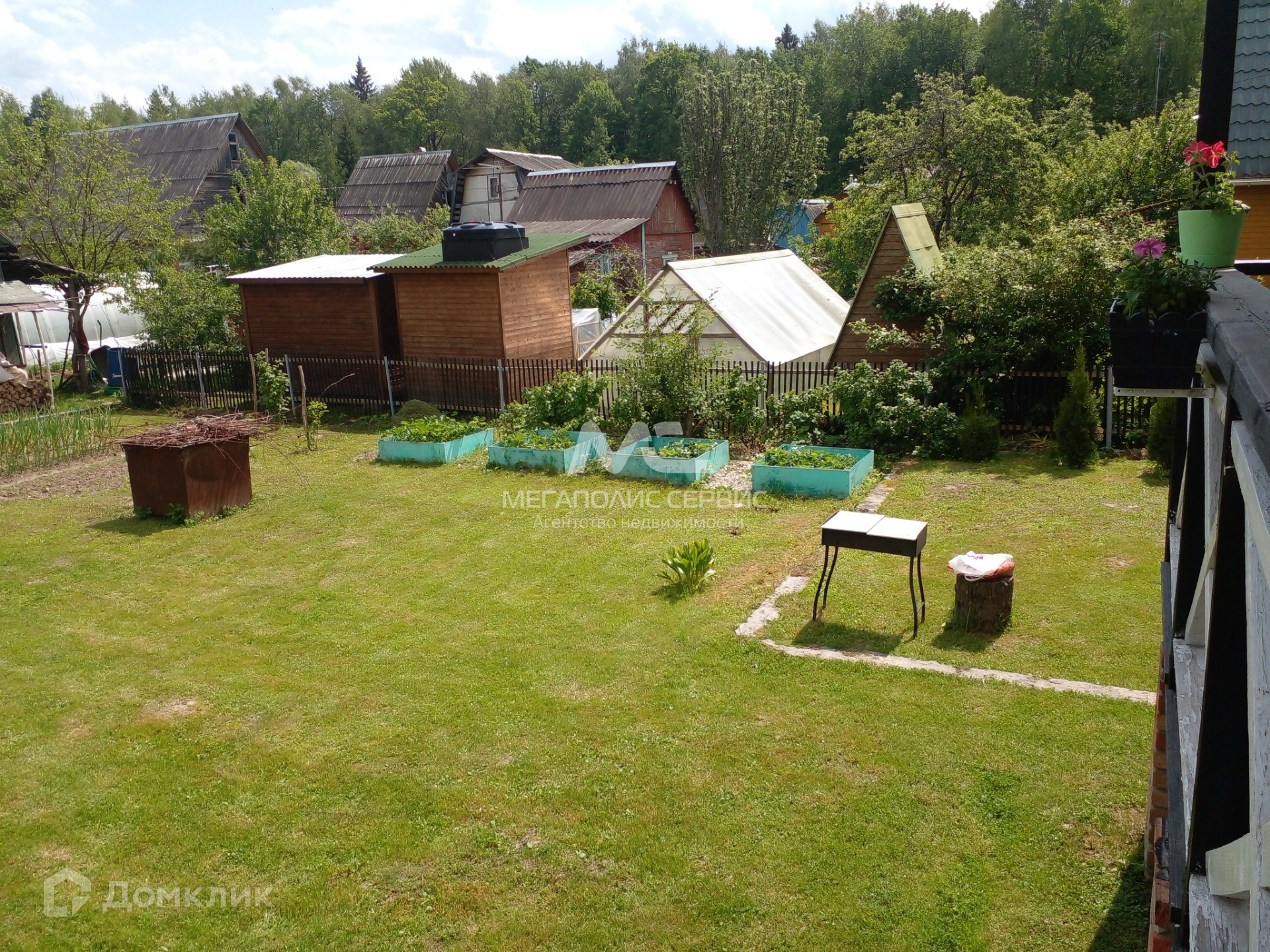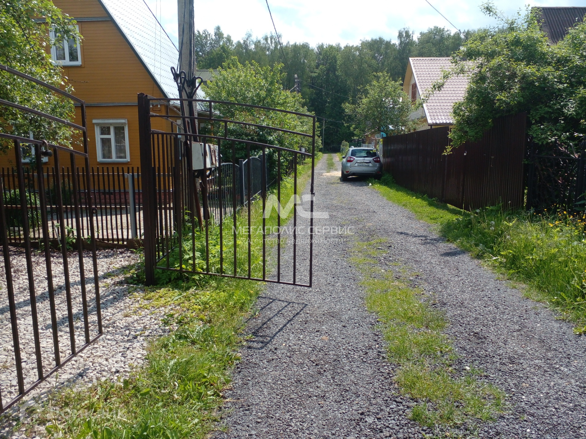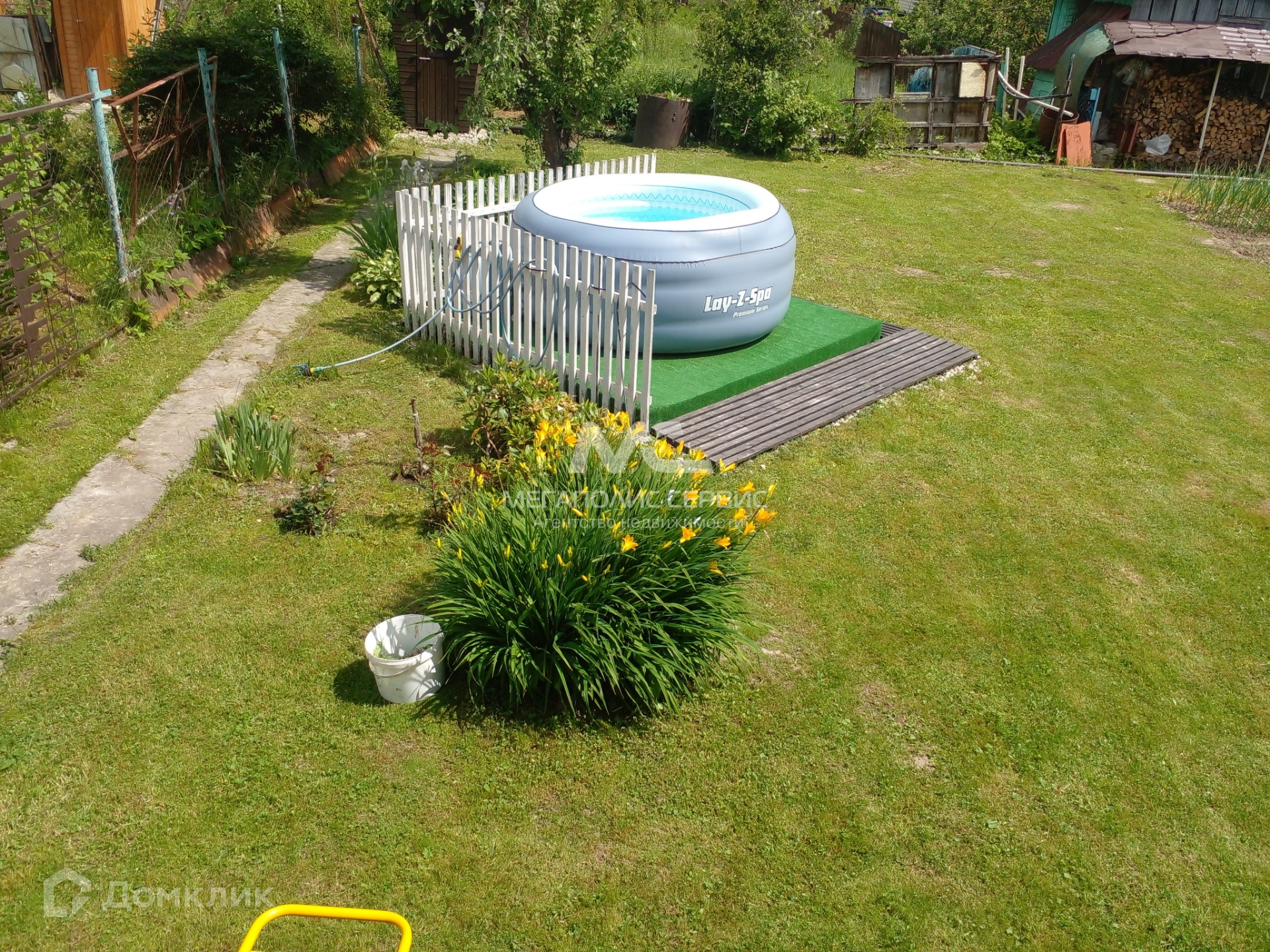 Участок прямоугольной формы, ровный, сухой, ухоженный. На участке растут цветы и плодовые деревья (две яблони и одна груша), кусты малины, ежевики, смородины. Имеется парковка, отсыпанная щебенкой для двух автомобилей. Забор сварной декоративный, имеются ворота и входная калитка. Хорошие соседи.