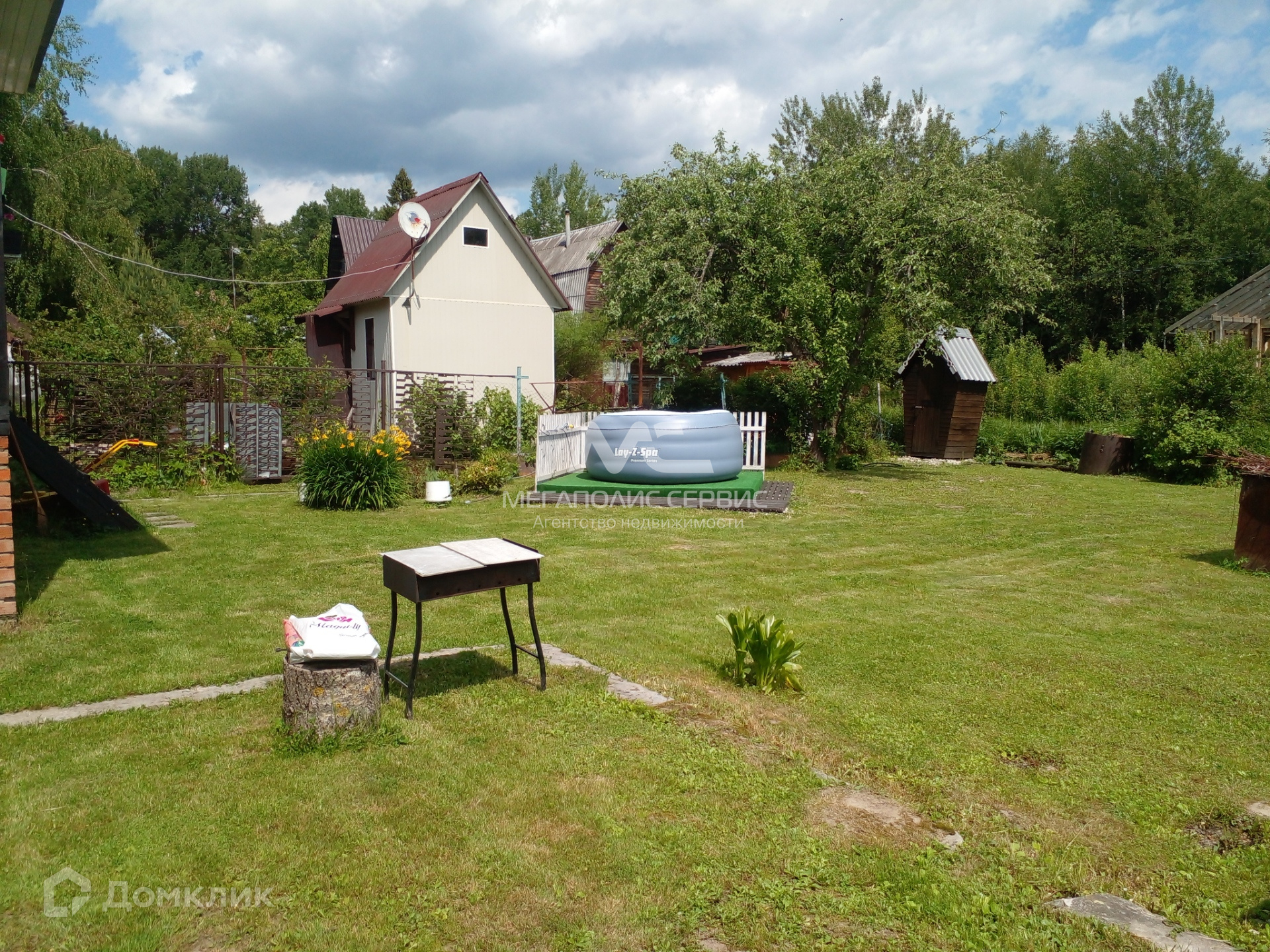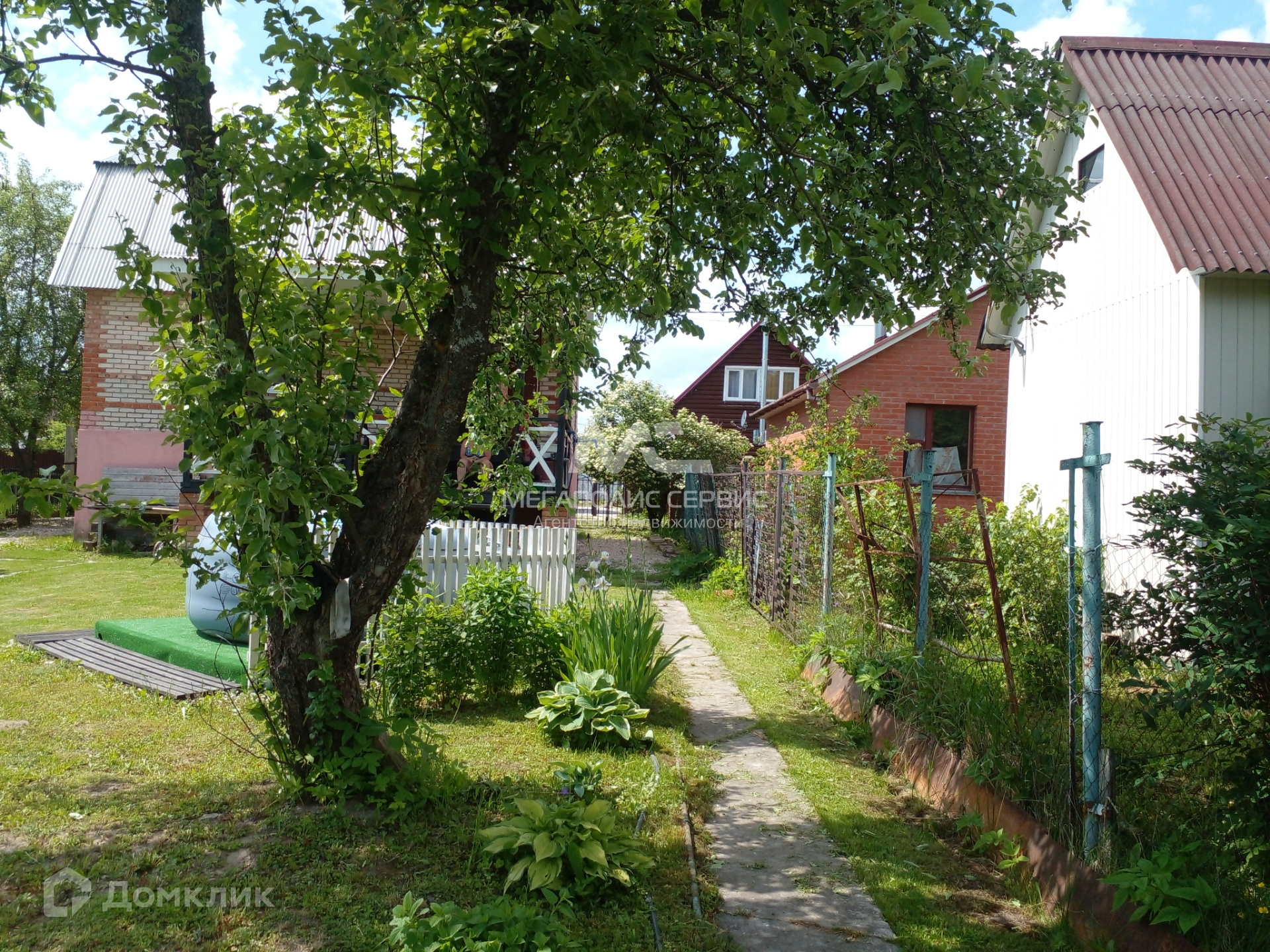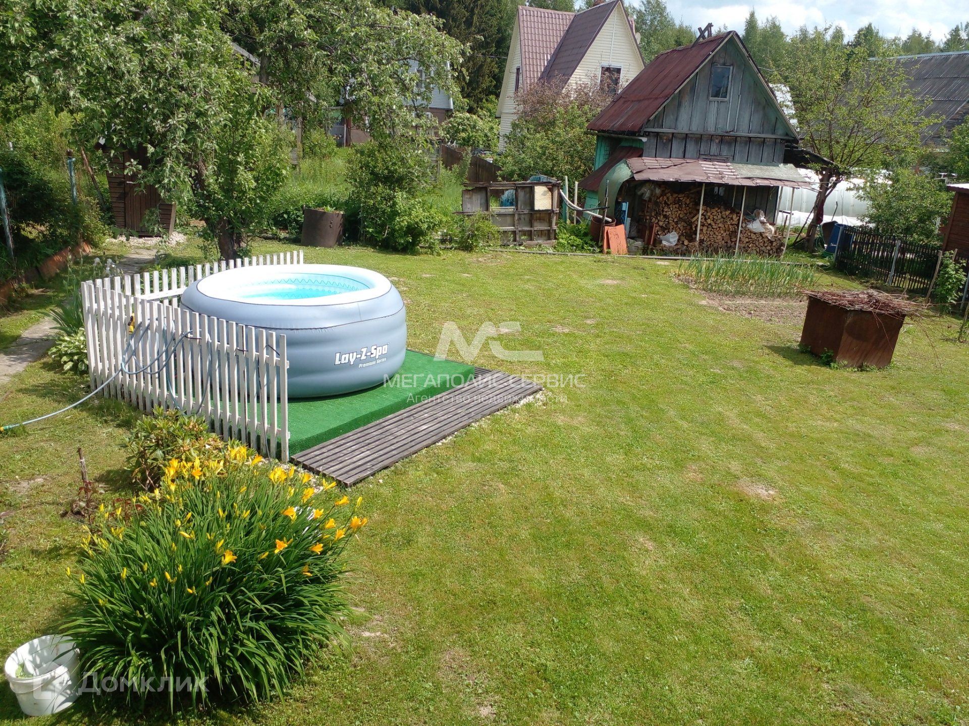 Участок прямоугольной формы, ровный, сухой, ухоженный. На участке растут цветы и плодовые деревья (две яблони и одна груша), кусты малины, ежевики, смородины. Имеется парковка, отсыпанная щебенкой для двух автомобилей. Забор сварной декоративный, имеются ворота и входная калитка. Хорошие соседи.