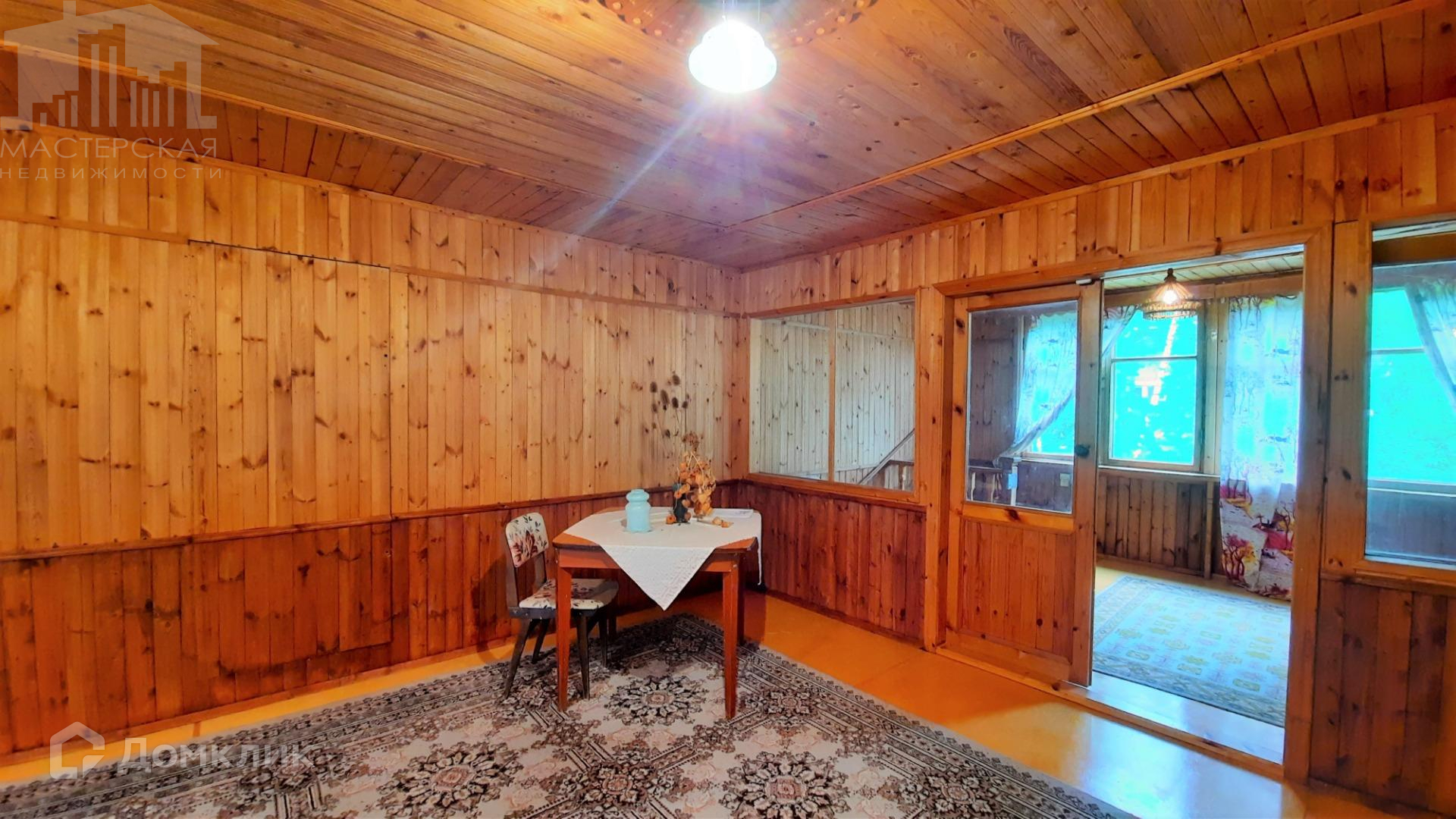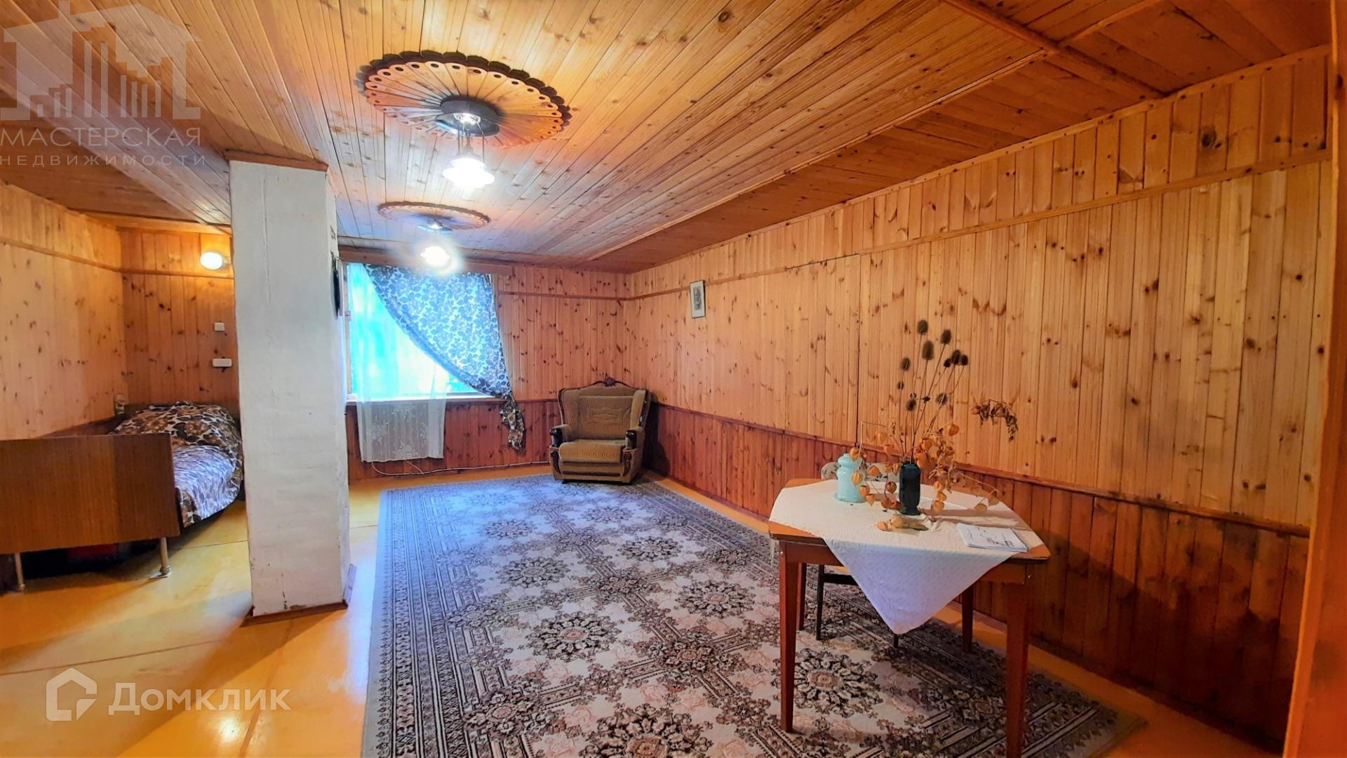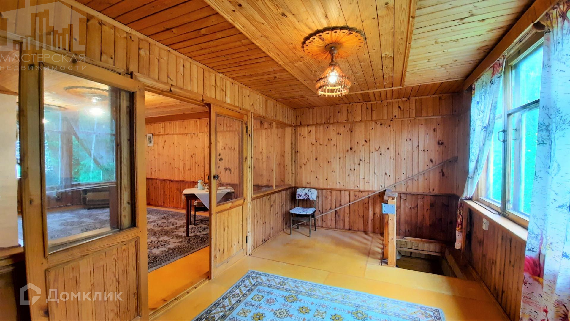 Общая площадь дома - 87 кв.м, 2 этажа, стены из бруса, внутренняя и внешняя отделка - вагонка, кровля - ондулин.