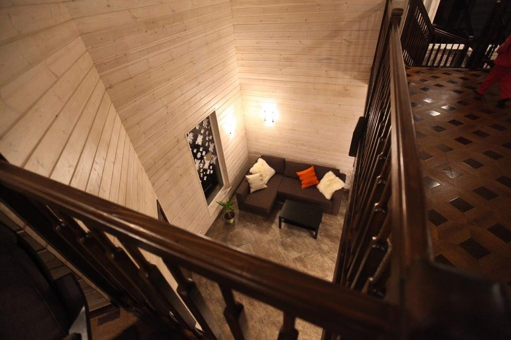 4. . Принцип "Русская печь". Воссоздан нами с помощью массивной бетонной стяжки пола, теплоизолированной ППУ со всех сторон, кроме выходящей внутрь здания поверхности. По всей площади плиты вмонтирован жидкостный «тёплый пол». Температура пола регулируется , при этом инженерные коммуникации сосредоточены на 1 этаже.
