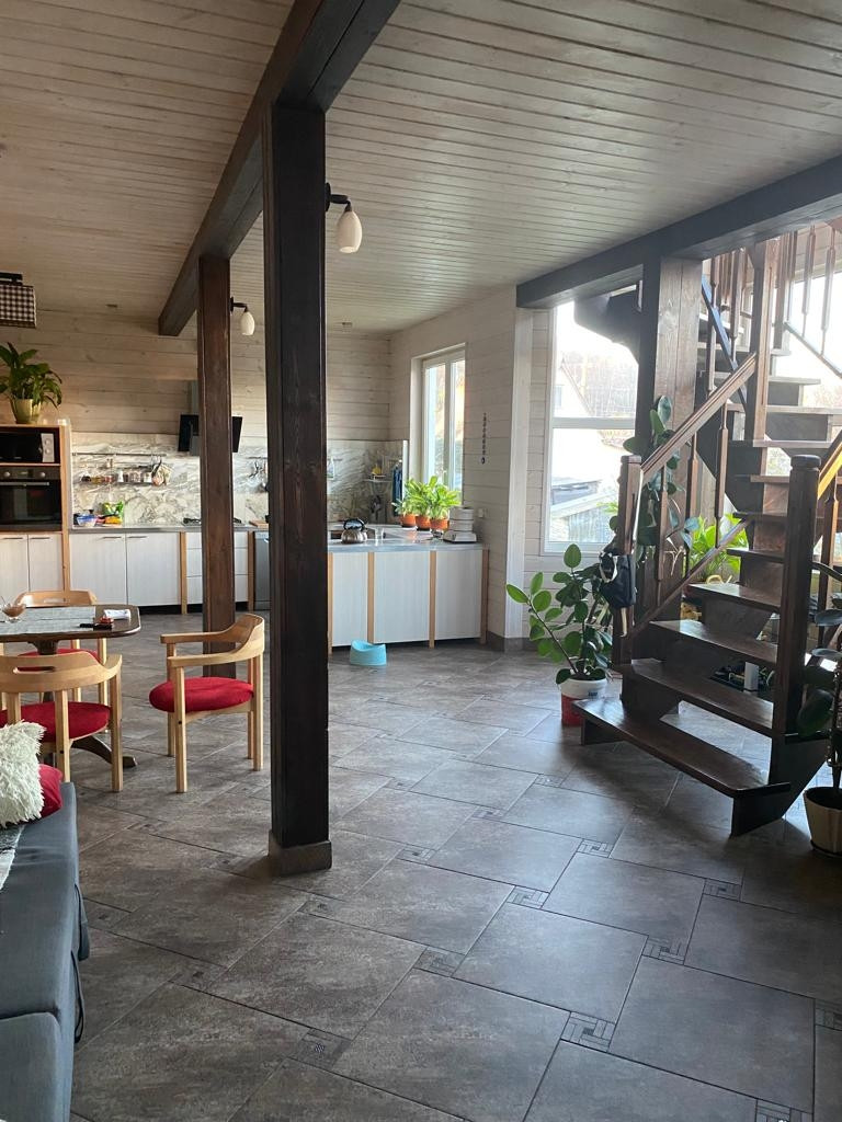 Дом расположен в деревне Хиттолово. В нескольких минутах езды – горнолыжные курорты, зубровник, а до КАД ехать всего 25-30 минут. Пробки по Приозерскому направлению практически отсутствуют. В шаговой доступности – два живописных озера, на территории участка – пруд, в котором можно порыбачить «в тапочках». В летнее время сюда регулярно прилетает стая диких уток. Из-за чудесного вида водоем не стали огораживать забором.Двухэтажный коттедж, пригодный для круглогодичного проживания. Когда строили дом, предполагали, что в нем будут жить две семьи. Вход общий, но жилые помещения изолированы. Удобно, если вы хотите переехать с пожилыми родителями. Как вариант номер два – часть дома можно коммерчески использовать.