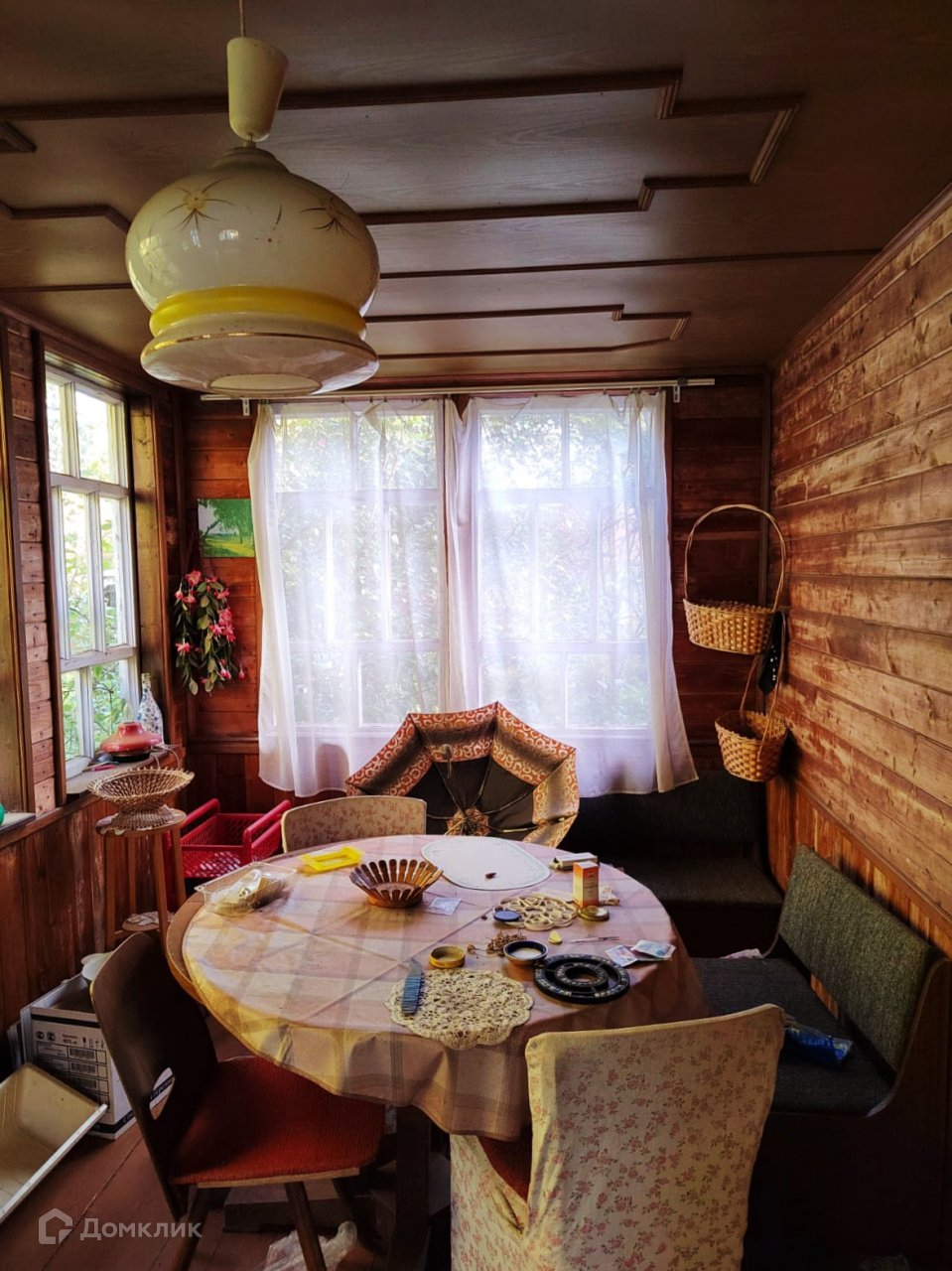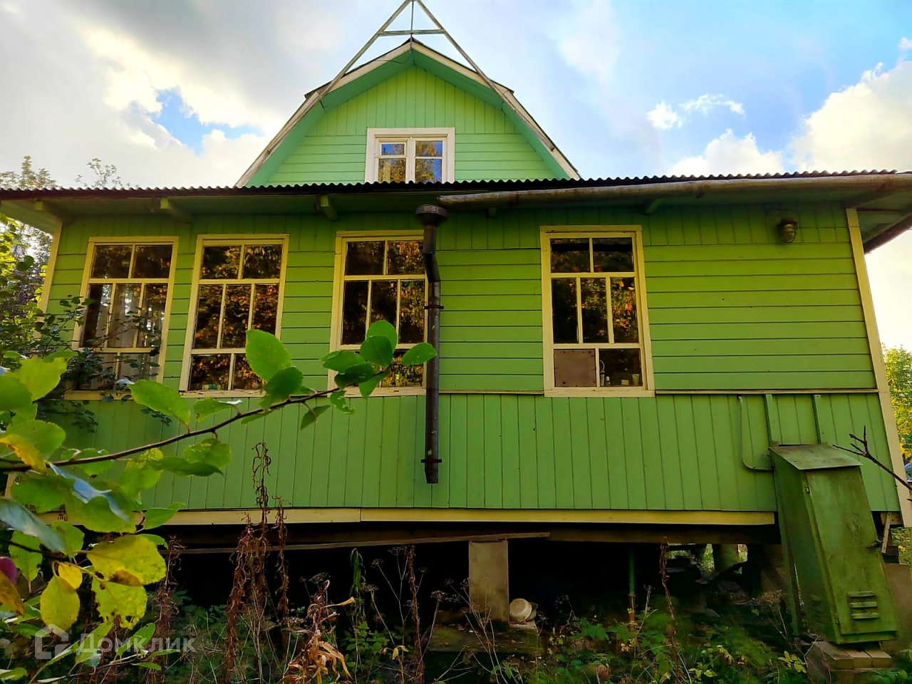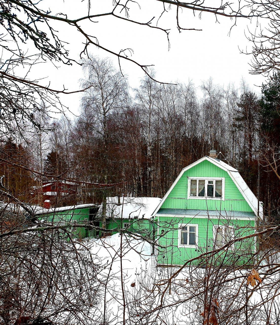Садовый дом, площадью по первому этажу 64,7 м.кв. Большая,светлая веранда и кухня. На первом этаже также просторная гостиная(20,7 м.кв.) и отдельная комната. Хорошая кирпичная печь. На втором( мансарда) этаже две изолированные комнаты. Высокий фундамент, окна деревянные,двойные. В доме жили сезонно,для зимнего проживания необходимы дополнительные работы.